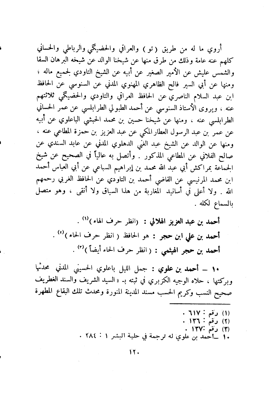 1. - أحمد بن علوي (4) : جمل الليل باعلوي الحسيني المدني محدثها وبركتها، حلاه الوجيه الكزبري في ثبته ب " السيد الشريف والسند الغطريف صحيح النسب وكريم الحسب مسند المدينة المنورة ومحدث تلك البقاع المطهرة