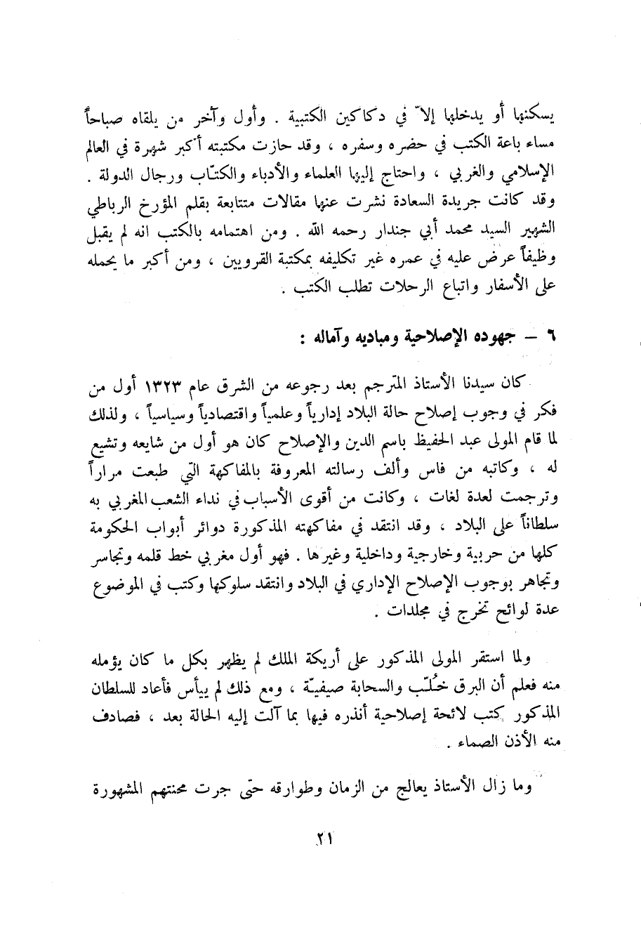 19 - الترجمة السياسية لشقيقه الشيخ الكتاني الشهير.