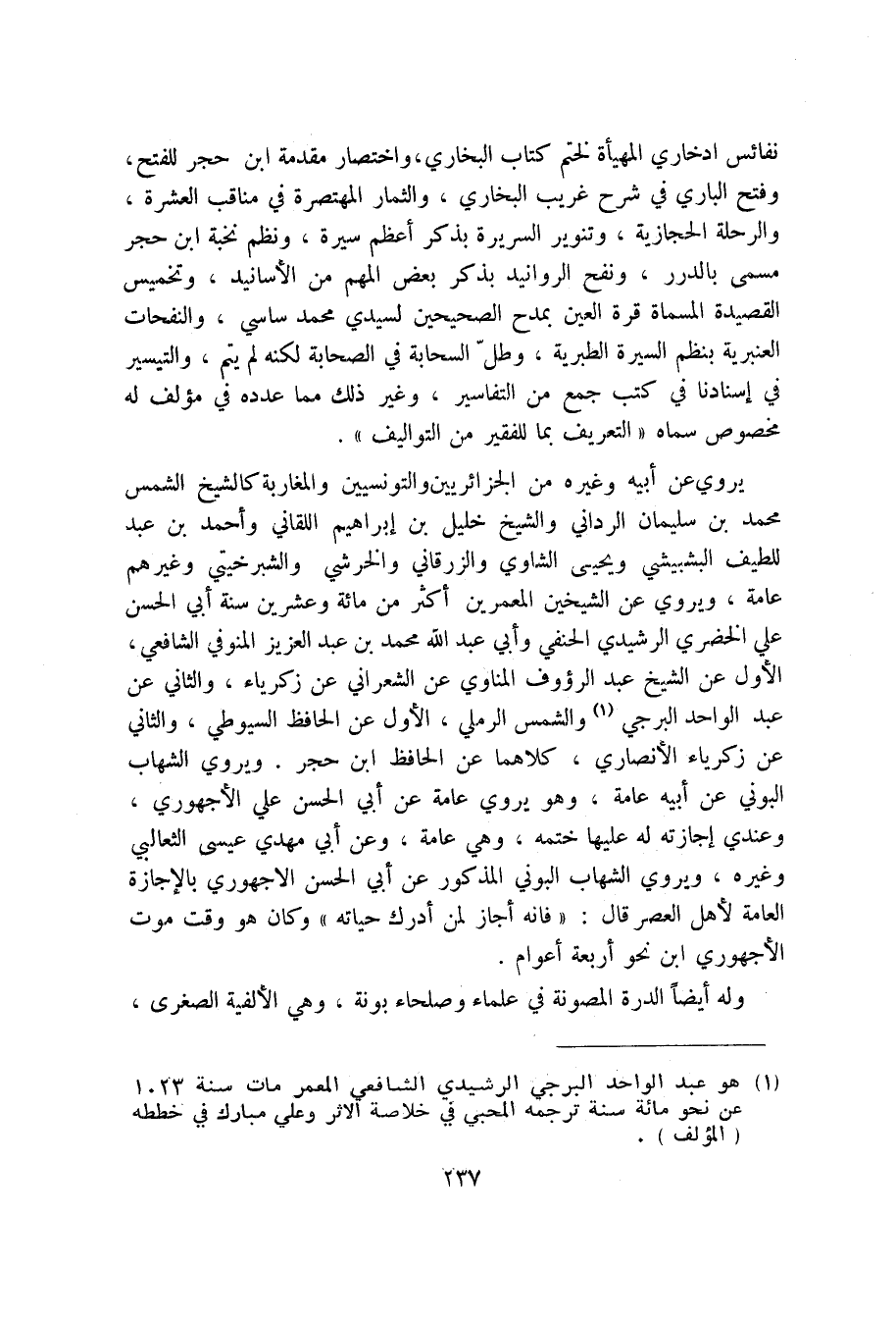 (1) هو عبد الواحد البرجي الرشيدي الشافعي المعمر مات سنة 1023 عن نحو مائة سنة ترجمه المحيي في خلاصة الاثر وعلي مبارك في خططه (المؤلف) .