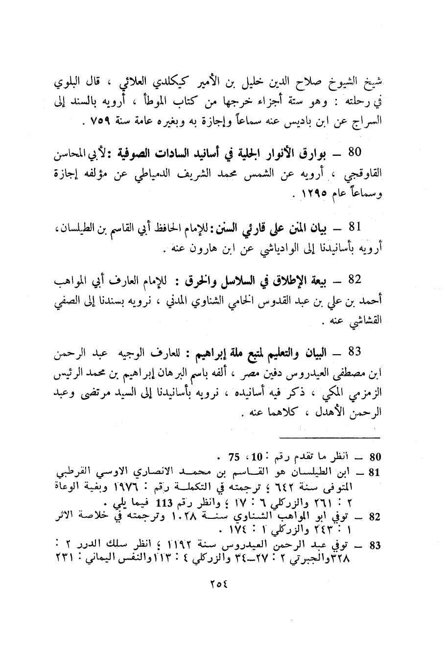 83 - البيان والتعليم لمتبع ملة إبراهيم (4) : للعارف الوجيه عبد الرحمن ابن مصطفى العيدروس دفين مصر، ألفه باسم البرهان إبراهيم بن محمد الرئيس الزمزمي المكي، ذكر فيه أسانيده، نرويه بأسانيدنا إلى السيد مرتضى وعبد الرحمن الأهدل، كلاهما عنه.