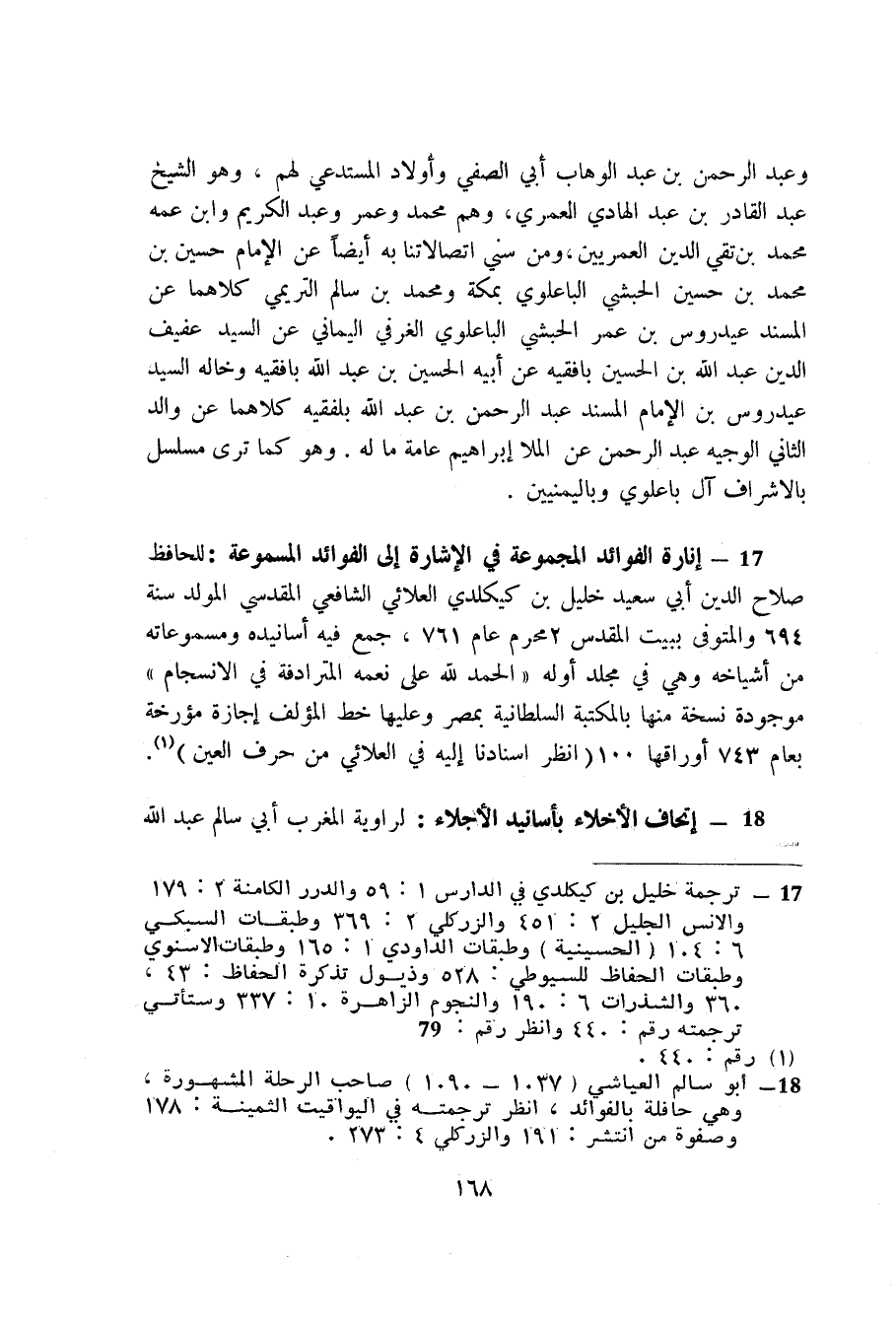 (3) للتافلالتي ترجمة في سلك الدرر 4: 102 وبروكلمان 2: 463 والزركلي 7: 296 وعد عدداً من مؤلفاته وقال: " رأيتها جميعاً في المكتبة الخالدية بالقدس ".