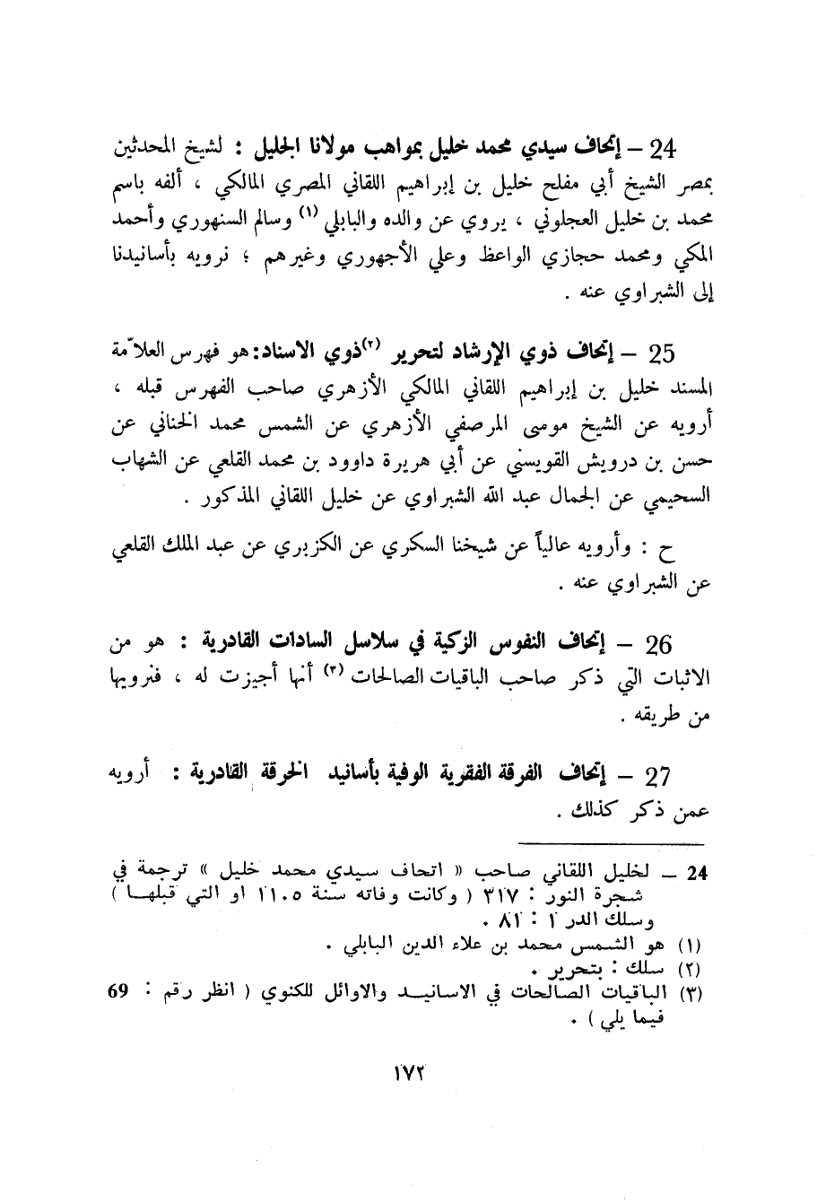 ومن شيوخ المترجم أيضاً ومجيزيه عامة محمد الأمين بن جعفر العلوي الصوصي السجلماسي ويوسف بن بدر الدين المغربي وأبو التوفيق العربي الدكالي وعبد الرحمن بن محمد الحايك التطواني وعبد الرحمن بن أحمد الشنكيطي وعبد الله بن محمد بن عبد الله بن حمزة ابن أبي سالم العياشي وأحمد اليمني بن الحسين بن محمد ابن أبي زيان ومحمد بن أحمد بن أبي بكر بن ناصر مهاوش ومحمد بن السيد حمزة بن محمد بن قاسم بن الشيخ أبي العباس أحمد الحبيب اللمطي السجلماسي والحاج البخاري بن الحاج بو طاهر التبزاوي الفلالي وعبد القادر بن أحمد الكوهن صاحب " الإمداد "، وعندي إجازته له بخطه بعث