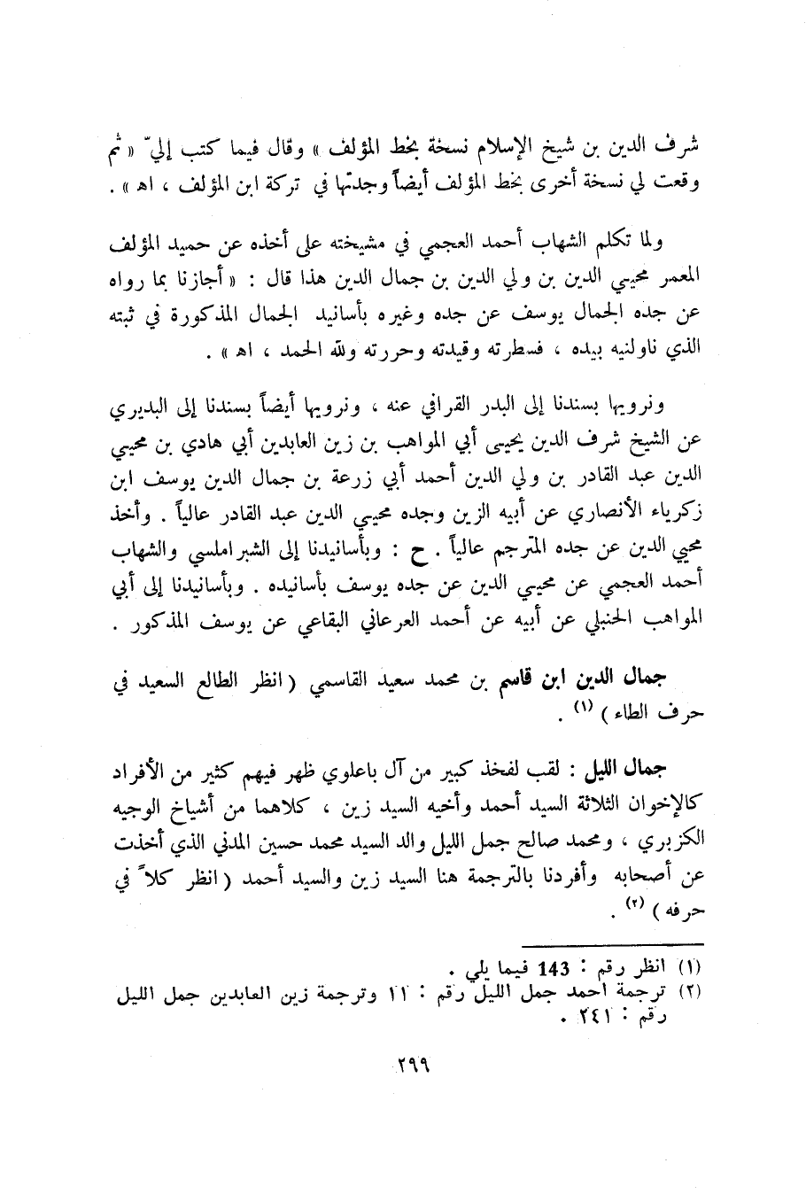 (2) ترجمة أحمد جمل الليل رقم: 11 وترجمة زين العابدين جمل الليل رقم: 241.