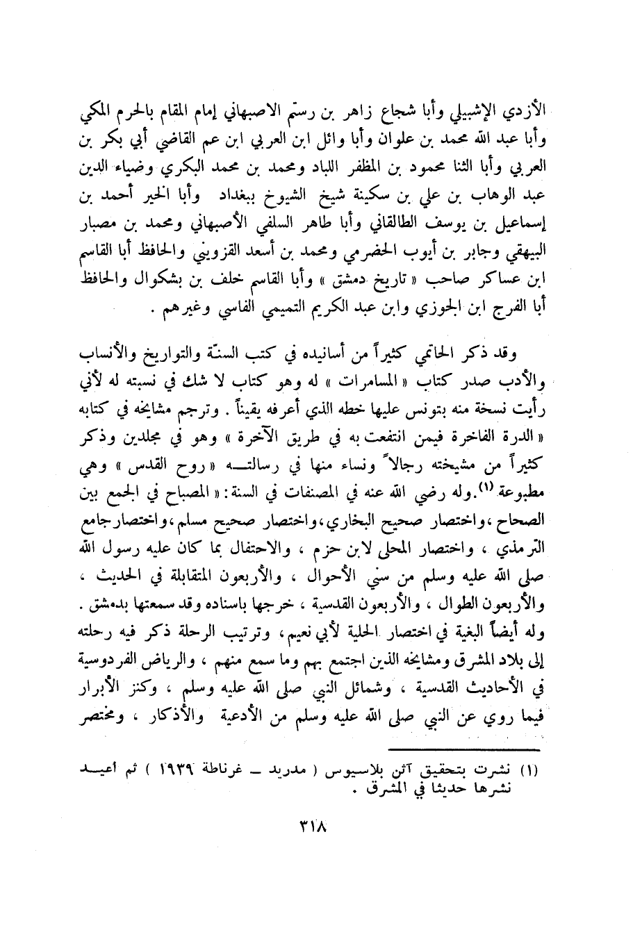 (1) نشرت بتحقيق آثن بلاسيوس (مدريد غرناطة 1939) ثم أعيد نشرها حديثاً في المشرق.