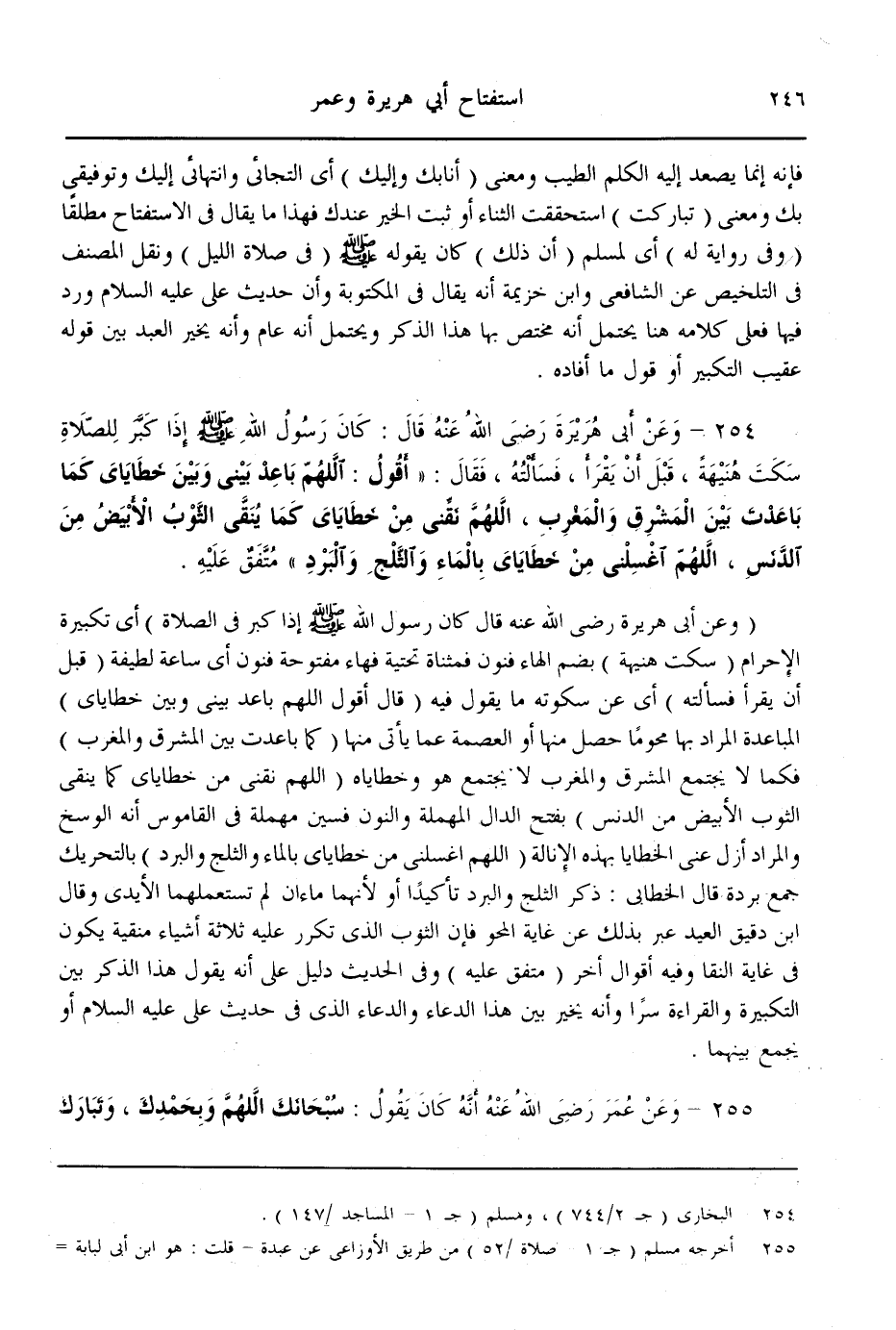 (255) - وَعَنْ عُمَرَ - رَضِيَ اللَّهُ عَنْهُ - أَنَّهُ كَانَ يَقُولُ: سُبْحَانَك اللَّهُمَّ وَبِحَمْدِك، وَتَبَارَكَ