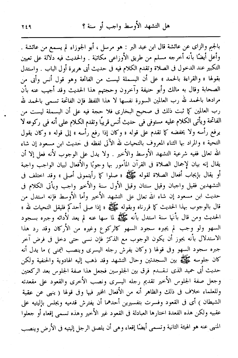 وَالْمُرَادُ بِهَا الثَّنَاءُ الْمَعْرُوفُ بِالتَّحِيَّاتِ لِلَّهِ الْآتِي لَفْظُهُ فِي حَدِيثِ ابْنِ مَسْعُودٍ " إنْ شَاءَ اللَّه تَعَالَى فَفِيهِ شَرْعِيَّةُ التَّشَهُّدِ الْأَوْسَطِ وَالْأَخِيرِ؛ وَلَا يَدُلُّ عَلَى الْوُجُوبِ لِأَنَّهُ فِعْلٌ، إلَّا أَنْ يُقَالَ إنَّهُ بَيَانٌ لِإِجْمَالِ الصَّلَاةِ فِي الْقُرْآنِ الْمَأْمُورِ بِهَا وُجُوبًا، وَالْأَفْعَالُ لِبَيَانِ الْوَاجِبِ وَاجِبَةٌ، أَوْ يُقَالُ بِإِيجَابِ أَفْعَالِ الصَّلَاةِ لِقَوْلِهِ: «صَلُّوا كَمَا رَأَيْتُمُونِي أُصَلِّي» .
