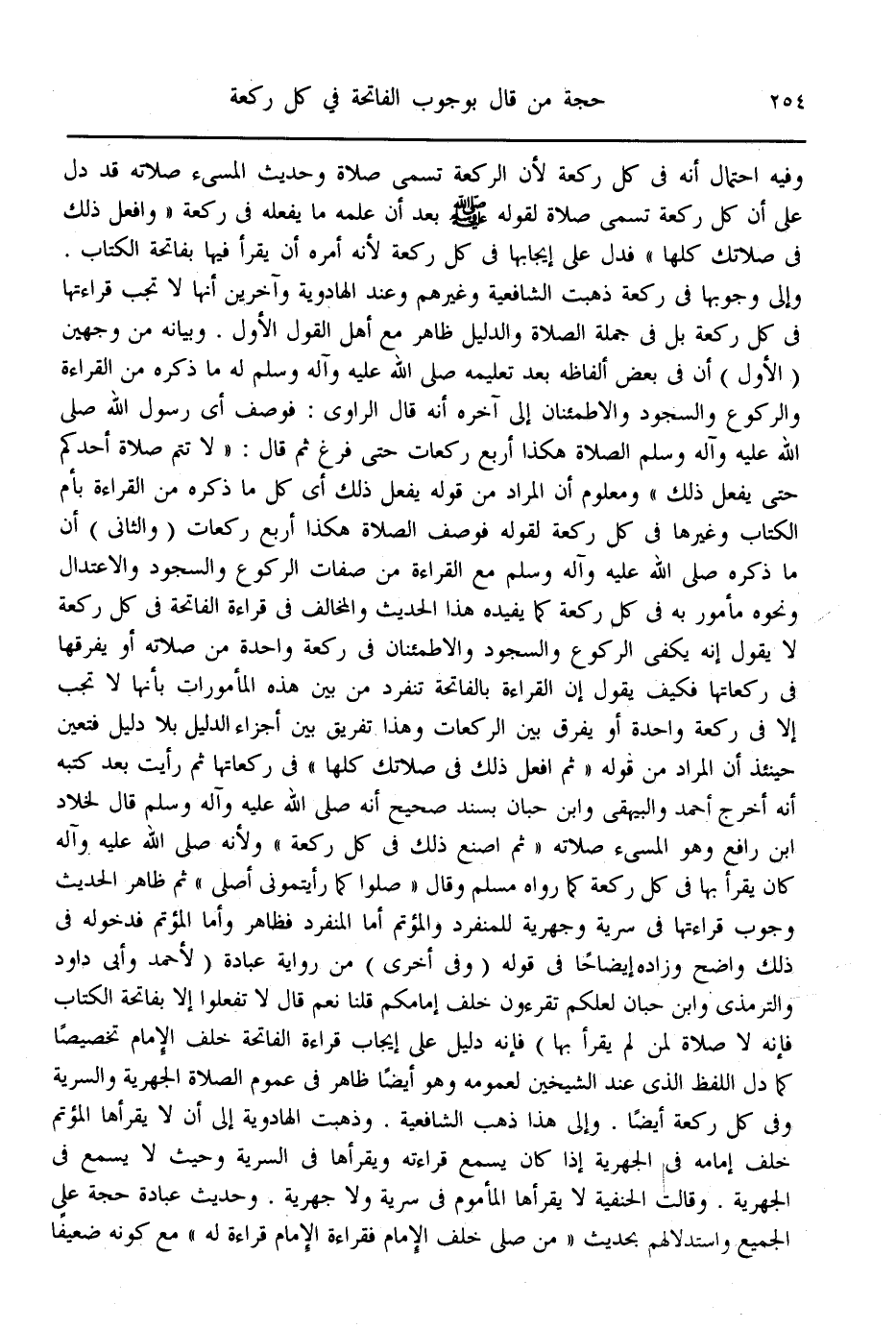 فَتَعَيَّنَ حِينَئِذٍ أَنَّ الْمُرَادَ مِنْ قَوْلِهِ " ثُمَّ افْعَلْ ذَلِكَ فِي صَلَاتِك كُلِّهَا " فِي رَكَعَاتِهَا، ثُمَّ رَأَيْت بَعْدَ كَتْبِهِ أَنَّهُ أَخْرَجَ الْبَيْهَقِيُّ وَابْنُ حِبَّانَ بِسَنَدٍ صَحِيحٍ: أَنَّهُ صَلَّى اللَّهُ عَلَيْهِ وَعَلَى آلِهِ وَسَلَّمَ قَالَ لِخَلَّادِ بْنِ رَافِعٍ وَهُوَ الْمُسِيءُ صَلَاتَهُ: " ثُمَّ اصْنَعْ ذَلِكَ فِي كُلِّ رَكْعَةٍ " وَلِأَنَّهُ صَلَّى اللَّهُ عَلَيْهِ وَعَلَى آلِهِ وَسَلَّمَ كَانَ يَقْرَأُ بِهَا فِي كُلِّ رَكْعَةٍ كَمَا رَوَاهُ مُسْلِمٌ وَقَالَ: «صَلُّوا كَمَا رَأَيْتُمُونِي أُصَلِّي» .