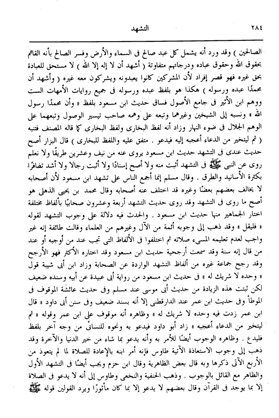 وَقَالَ مُحَمَّدُ بْنُ يَحْيَى الذُّهْلِيُّ: هُوَ أَصَحُّ مَا رُوِيَ فِي التَّشَهُّدِ؛ وَقَدْ رَوَى حَدِيثَ التَّشَهُّدِ أَرْبَعَةٌ وَعِشْرُونَ صَحَابِيًّا بِأَلْفَاظٍ مُخْتَلِفَةٍ، اخْتَارَ الْجَمَاهِيرُ مِنْهَا حَدِيثَ ابْنِ مَسْعُودٍ ".