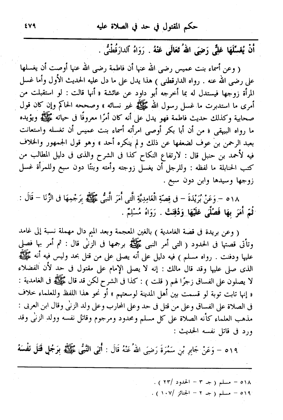(518) - وَعَنْ بُرَيْدَةَ - «فِي قِصَّةِ الْغَامِدِيَّةِ الَّتِي أَمَرَ النَّبِيُّ - صَلَّى اللَّهُ عَلَيْهِ وَسَلَّمَ - بِرَجْمِهَا فِي الزِّنَا - قَالَ: ثُمَّ أَمَرَ بِهَا فَصُلِّيَ عَلَيْهَا وَدُفِنَتْ.» رَوَاهُ مُسْلِمٌ.