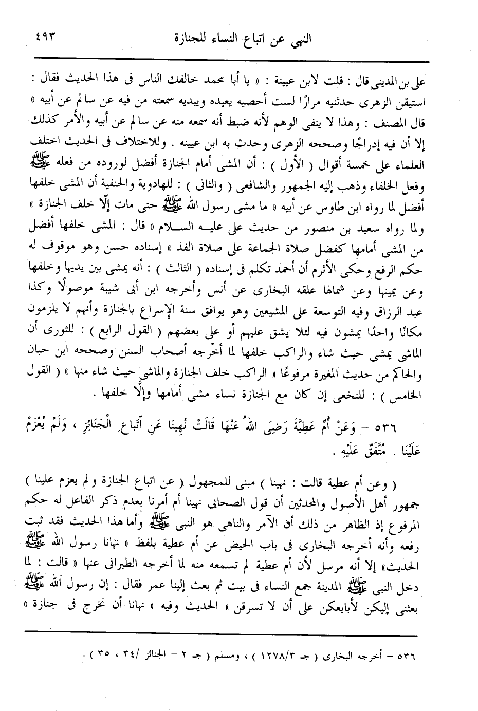 (536) - وَعَنْ أُمِّ عَطِيَّةَ - رَضِيَ اللَّهُ عَنْهَا - قَالَتْ «نُهِينَا عَنْ اتِّبَاعِ الْجَنَائِزِ، وَلَمْ يُعْزَمْ عَلَيْنَا.» مُتَّفَقٌ عَلَيْهِ.