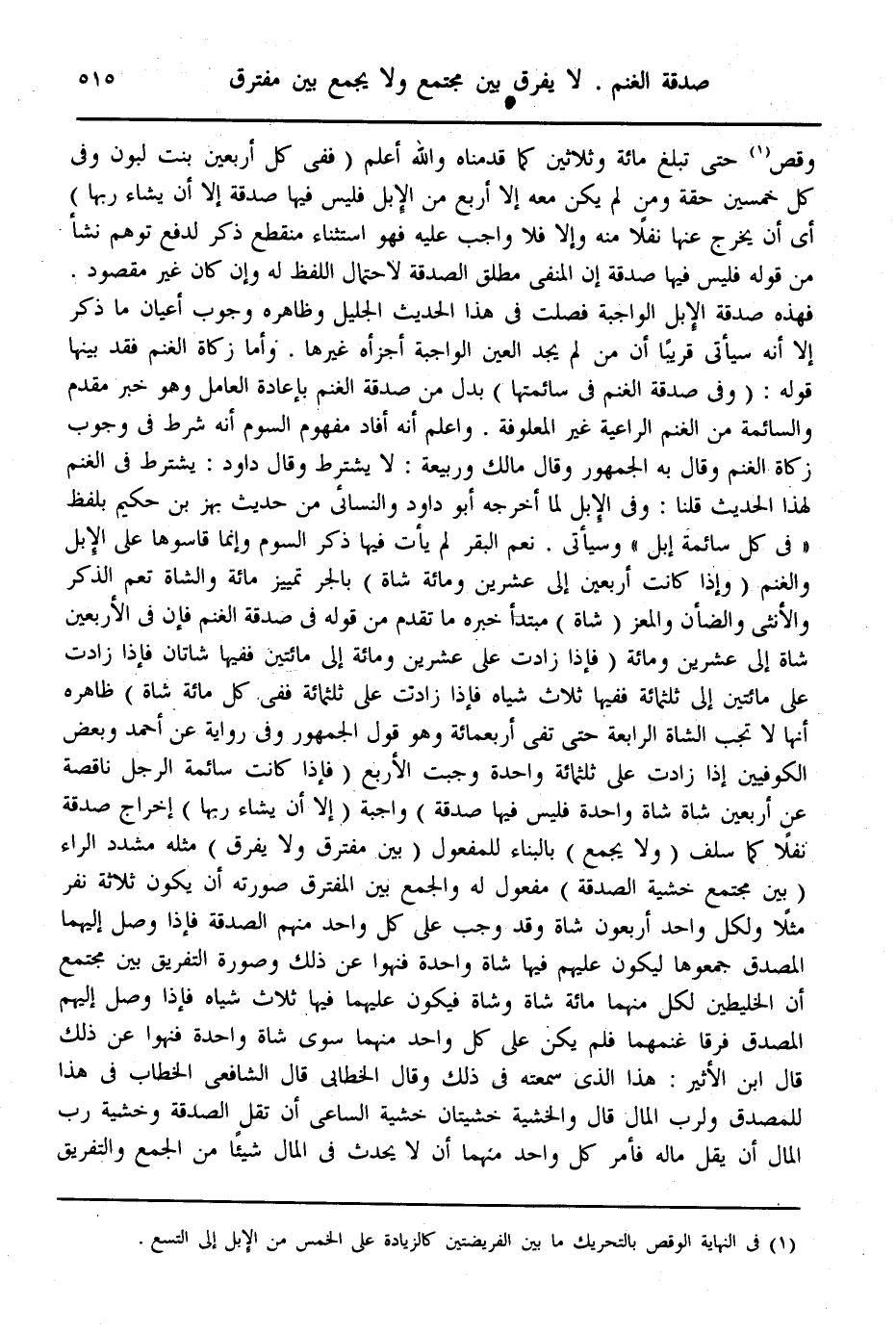 قَالَ ابْنُ الْأَثِيرِ: هَذَا الَّذِي سَمِعْته فِي ذَلِكَ وَقَالَ الْخَطَّابِيُّ قَالَ الشَّافِعِيُّ الْخِطَابُ فِي هَذَا لِلْمُصَّدِّقِ وَلِرَبِّ الْمَالِ قَالَ: وَالْخَشْيَةُ خَشْيَتَانِ: خَشْيَةُ السَّاعِي أَنْ تَقِلَّ الصَّدَقَةُ وَخَشْيَةُ رَبِّ الْمَالِ أَنْ يَقِلَّ مَالُهُ فَأُمِرَ كُلُّ وَاحِدٍ مِنْهُمَا أَنْ لَا يُحْدِثَ فِي الْمَالِ شَيْئًا مِنْ الْجَمْعِ وَالتَّفْرِيقِ