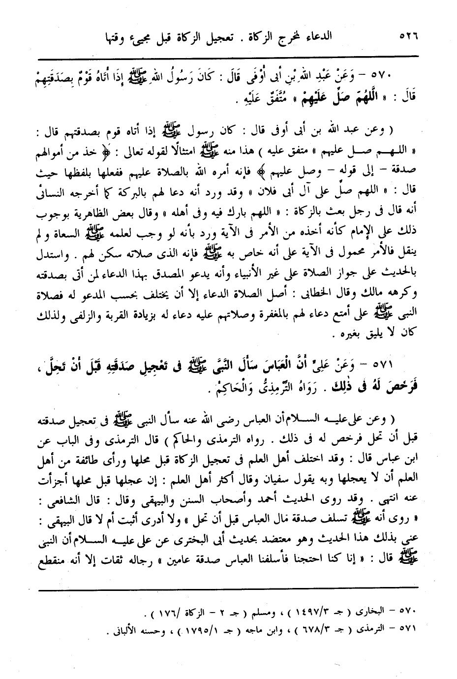(570) - وَعَنْ عَبْدِ اللَّهِ بْنِ أَبِي أَوْفَى قَالَ: «كَانَ رَسُولُ اللَّهِ - صَلَّى اللَّهُ عَلَيْهِ وَسَلَّمَ - إذَا أَتَاهُ قَوْمٌ بِصَدَقَتِهِمْ قَالَ: اللَّهُمَّ صَلِّ عَلَيْهِمْ» مُتَّفَقٌ عَلَيْهِ
