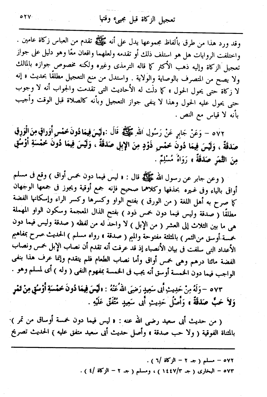 (572) - وَعَنْ جَابِرٍ عَنْ رَسُولِ اللَّهِ - صَلَّى اللَّهُ عَلَيْهِ وَسَلَّمَ - قَالَ: «لَيْسَ فِيمَا دُونَ خَمْسِ أَوْرَاقٍ مِنْ الْوَرِقِ صَدَقَةٌ، وَلَيْسَ فِيمَا دُونَ خَمْسِ ذَوْدٍ مِنْ الْإِبِلِ صَدَقَةٌ، وَلَيْسَ فِيمَا دُونَ خَمْسَةِ أَوْسُقٍ مِنْ التَّمْرِ صَدَقَةٌ» رَوَاهُ مُسْلِمٌ
