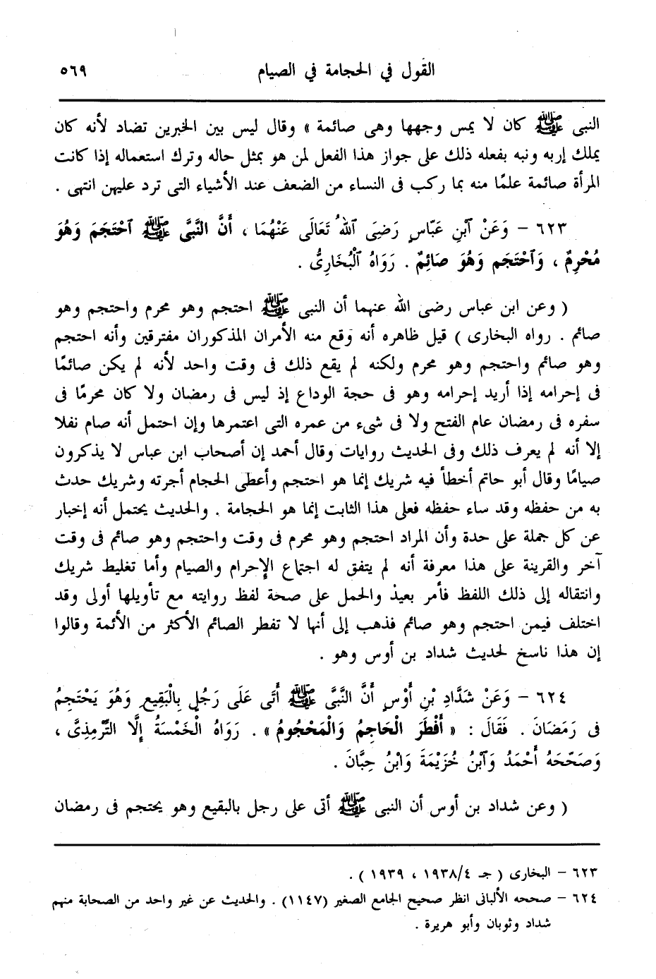 (623) - وَعَنْ ابْنِ عَبَّاسٍ - رَضِيَ اللَّهُ تَعَالَى عَنْهُمَا -، «أَنَّ النَّبِيَّ - صَلَّى اللَّهُ عَلَيْهِ وَسَلَّمَ - احْتَجَمَ وَهُوَ مُحْرِمٌ، وَاحْتَجَمَ وَهُوَ صَائِمٌ» . رَوَاهُ الْبُخَارِيُّ