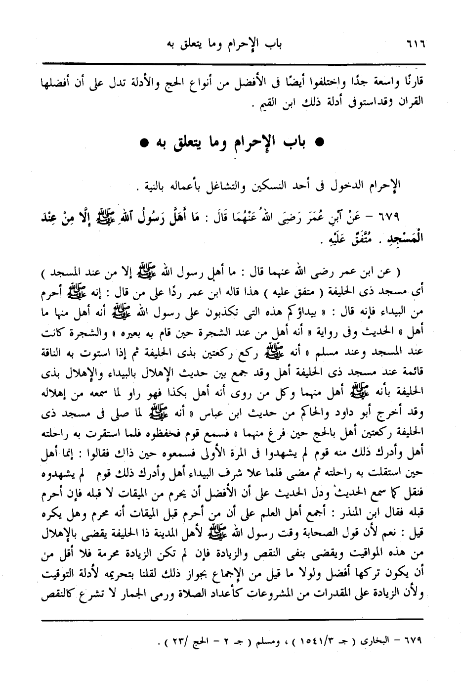 (679) - عَنْ ابْنِ عُمَرَ - رَضِيَ اللَّهُ عَنْهُمَا - قَالَ: «مَا أَهَلَّ رَسُولُ اللَّهِ - صَلَّى اللَّهُ عَلَيْهِ وَسَلَّمَ - إلَّا مِنْ عِنْدِ الْمَسْجِدِ» . مُتَّفَقٌ عَلَيْهِ