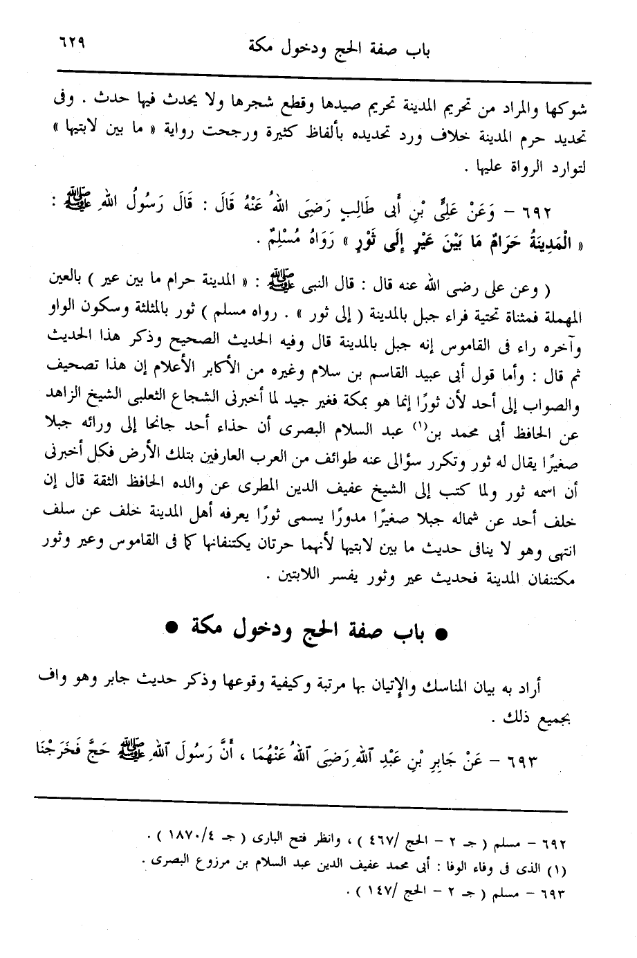 (692) - وَعَنْ عَلِيِّ بْنِ أَبِي طَالِبٍ - رَضِيَ اللَّهُ عَنْهُ - قَالَ: قَالَ رَسُولُ اللَّهِ - صَلَّى اللَّهُ عَلَيْهِ وَسَلَّمَ -: «الْمَدِينَةُ حَرَامٌ مَا بَيْنَ عَيْرٍ إلَى ثَوْرٍ» رَوَاهُ مُسْلِمٌ.