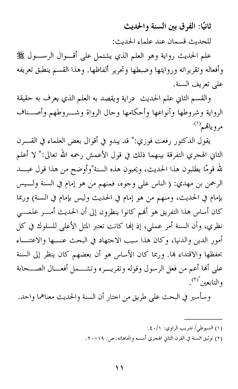 وسأسير في البحث على طريق من اختار أن السنة والحديث معناهما واحد.