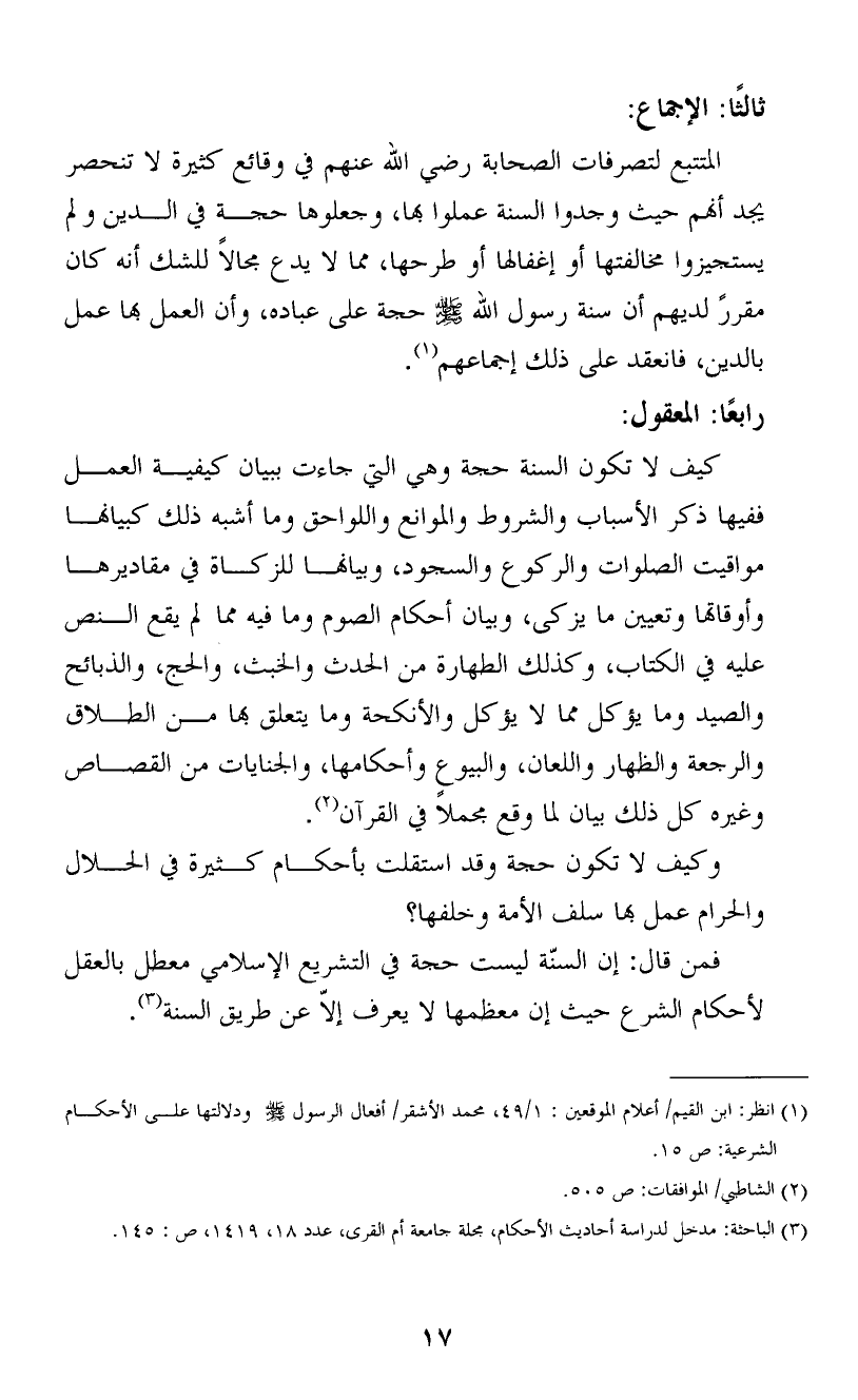 (1) انظر: ابن القيم/ أعلام الموقعين: 1/49، محمد الأشقر/ أفعال الرسول (ودلالتها على الأحكام الشرعية: ص 15.