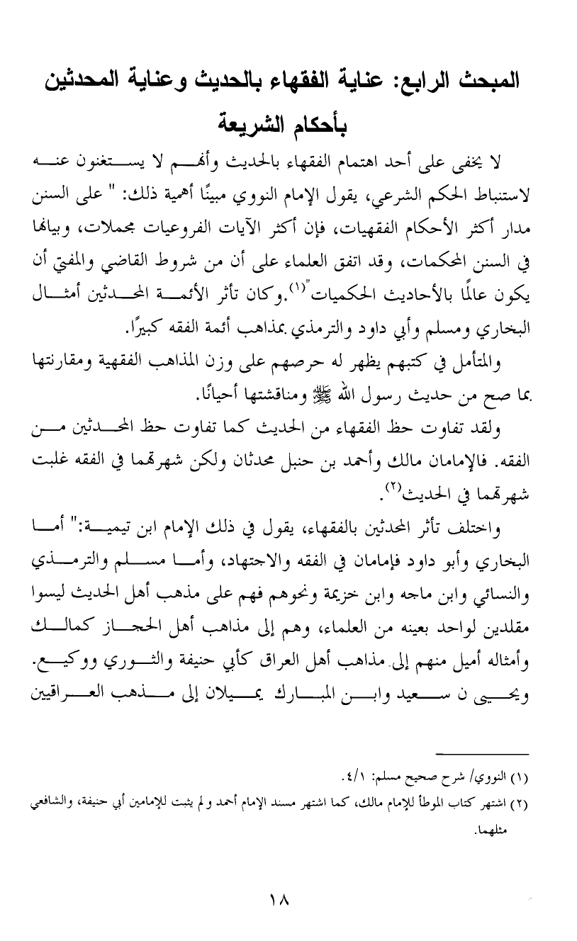 المبحث الرابع: عناية الفقهاء بالحديث وعناية المحدثين بأحكام الشريعة