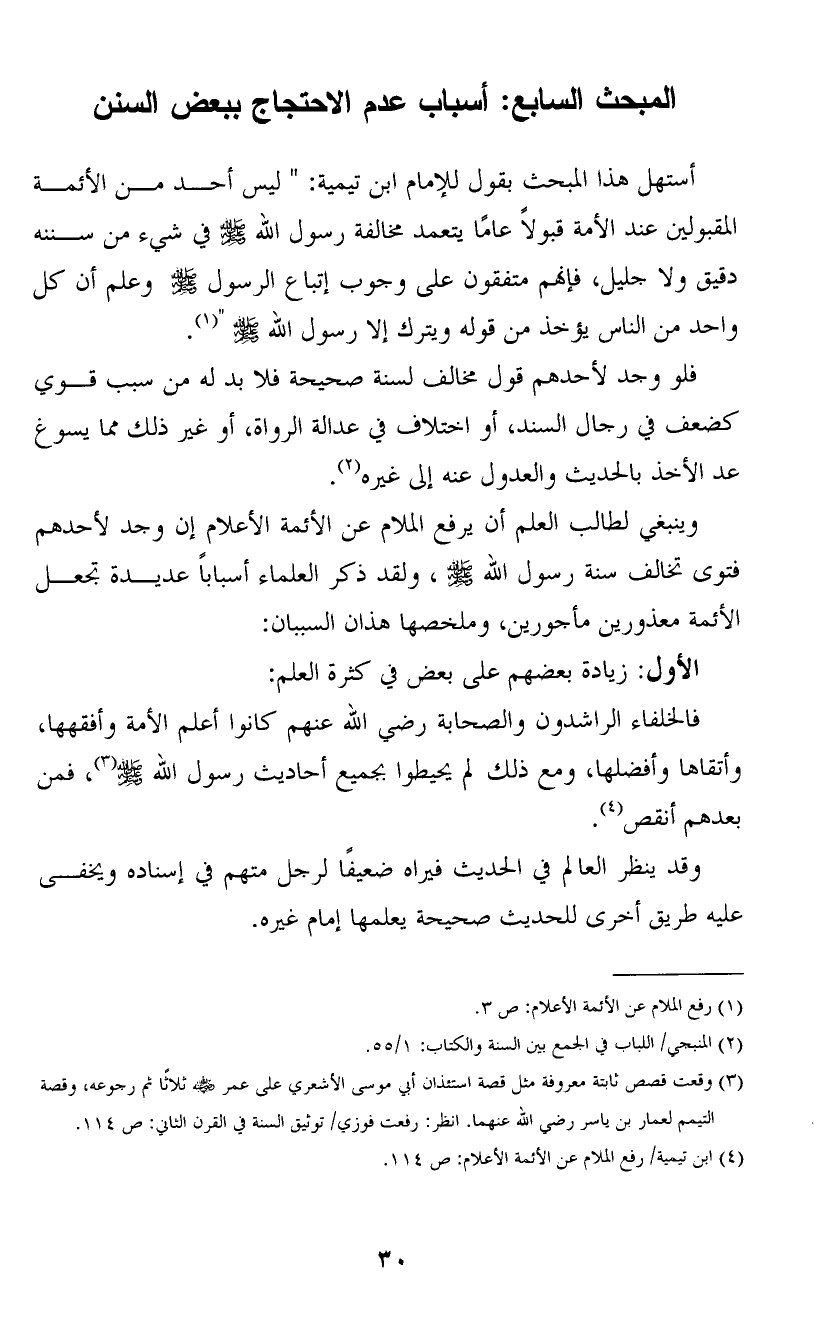 المبحث السابع: أسباب عدم الاحتجاج ببعض السنن