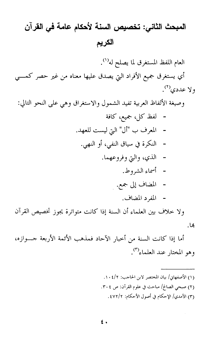 المبحث الثاني: تخصيص السنة لأحكام عامة في القرآن الكريم