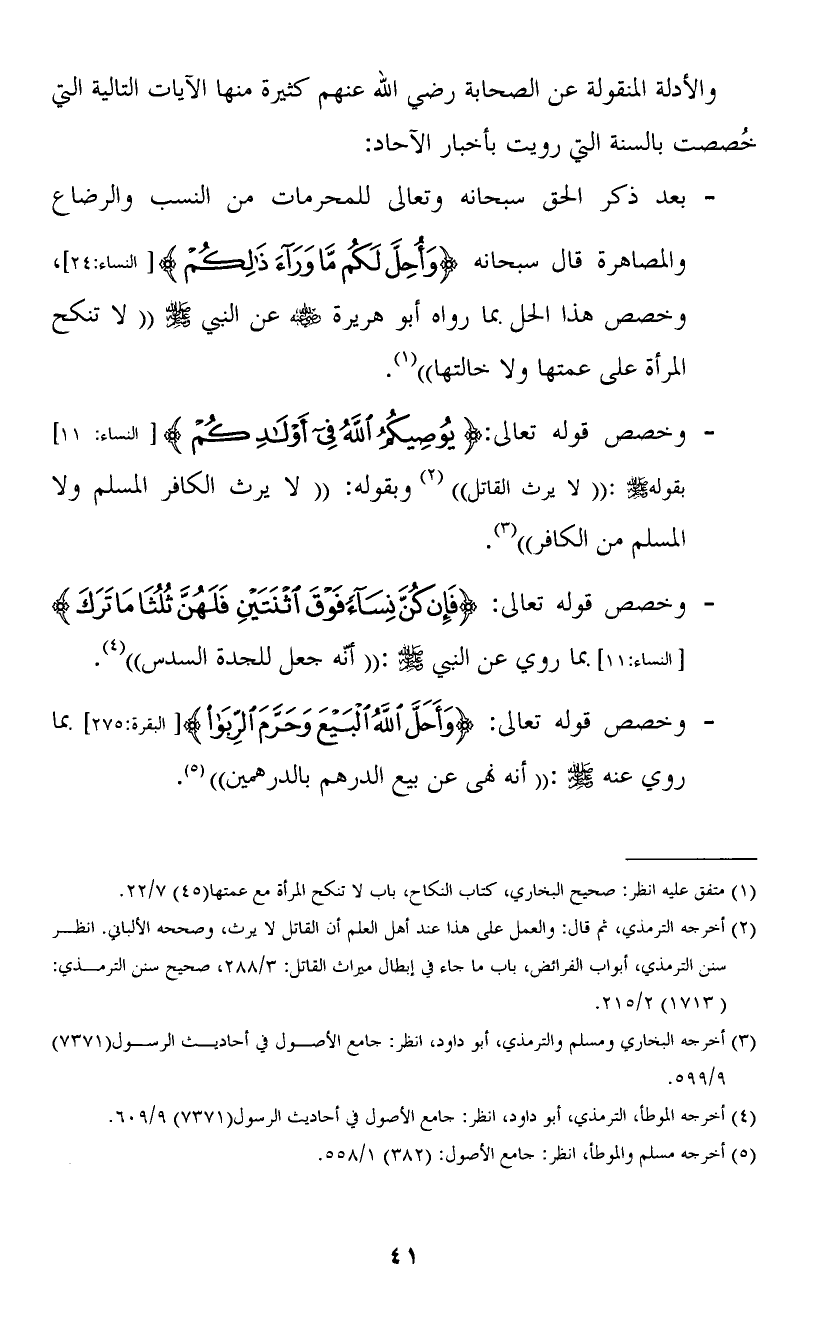 (1) متفق عليه انظر: صحيح البخاري، كتاب النكاح، باب لا تنكح المرأة مع عمتها (45) 7/22.