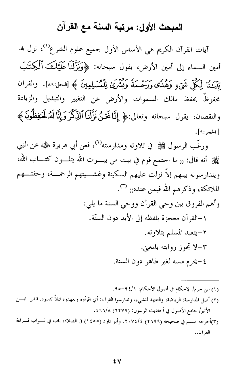 المبحث الأول: مرتبة السنة مع القرآن