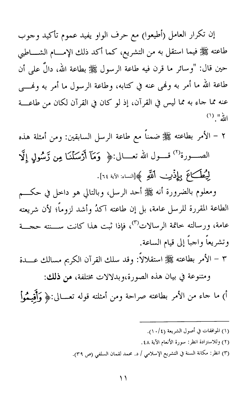 3 - الأمر بطاعته صلى الله عليه وسلم استقلالاً: وقد سلك القرآن الكريم مسالك عدة ومتنوعة في بيان هذه الصورة، وبدلالات مختلفة، من ذلك: