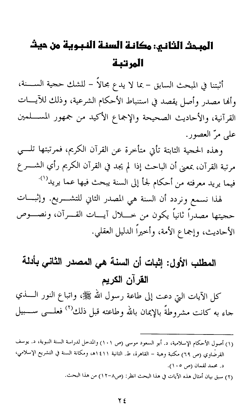 (1) أصول الأحكام الإسلامية، د. أبو السعود موسى (ص 101) والمدخل لدراسة السنة النبوية، د. يوسف القرضاوي (ص 69) مكتبة وهبة - القاهرة، ط. الثانية 1411?، ومكانة السنة في التشريع الإسلامي، د. محمد لقمان (ص 105) .