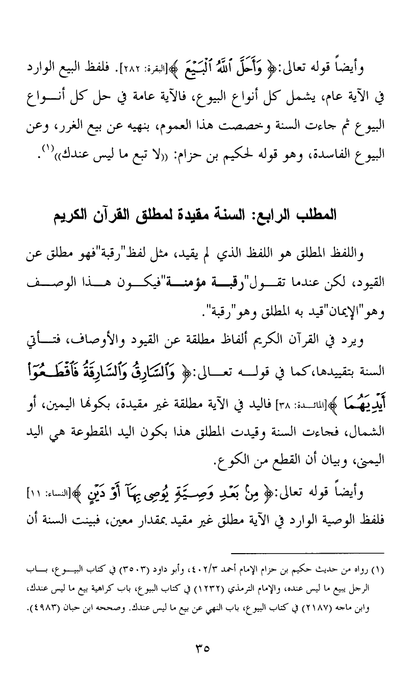 المطلب الرابع: السنة مقيدة لمطلق القرلآن الكريم
