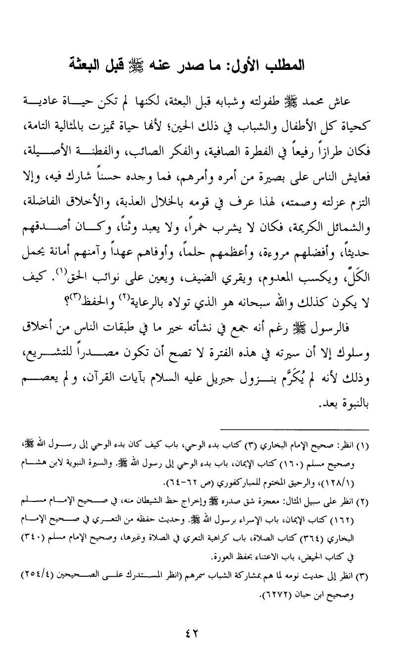 المطلب الأول: ما صدر عنه صلى الله عليه وسلم قبل البعثة
