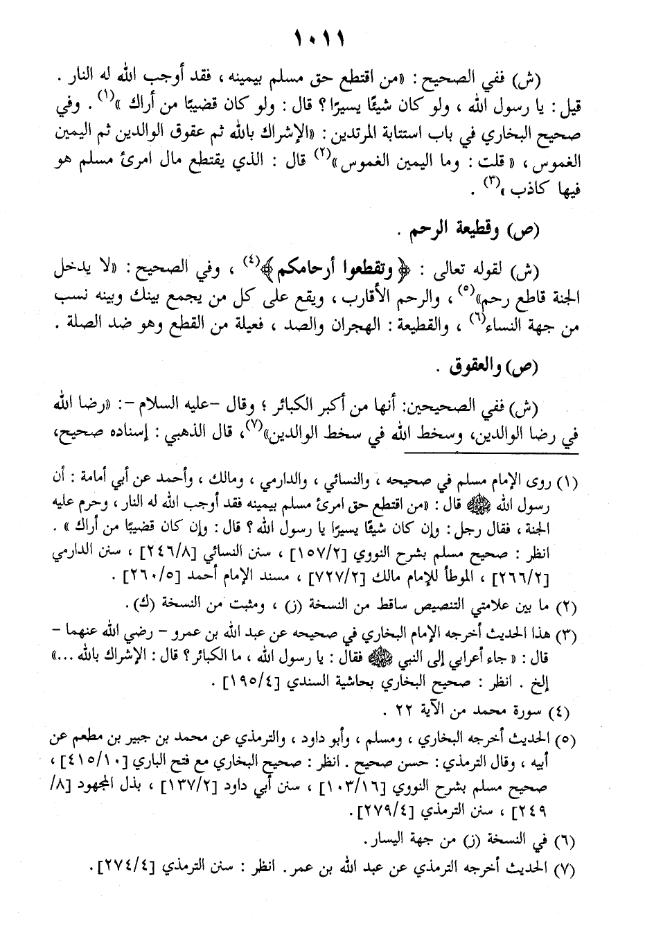 (ش) ففي الصحيح: ((من اقتطع حق مسلم بيمينه فقد أوجب الله له النار)). قيل: يا رسول الله ولو كان شيئا يسيرا؟ قال: ((ولو كان قضيبا من أراك)) وفي صحيح البخاري في باب استتابة المرتدين: ((الإشراك بالله ثم عقوق الوالدين ثم اليمين الغموس))، قلت: وما اليمين الغموس؟ قال: ((الذي يقتطع مال امرئ مسلم هو فيها كاذب)).