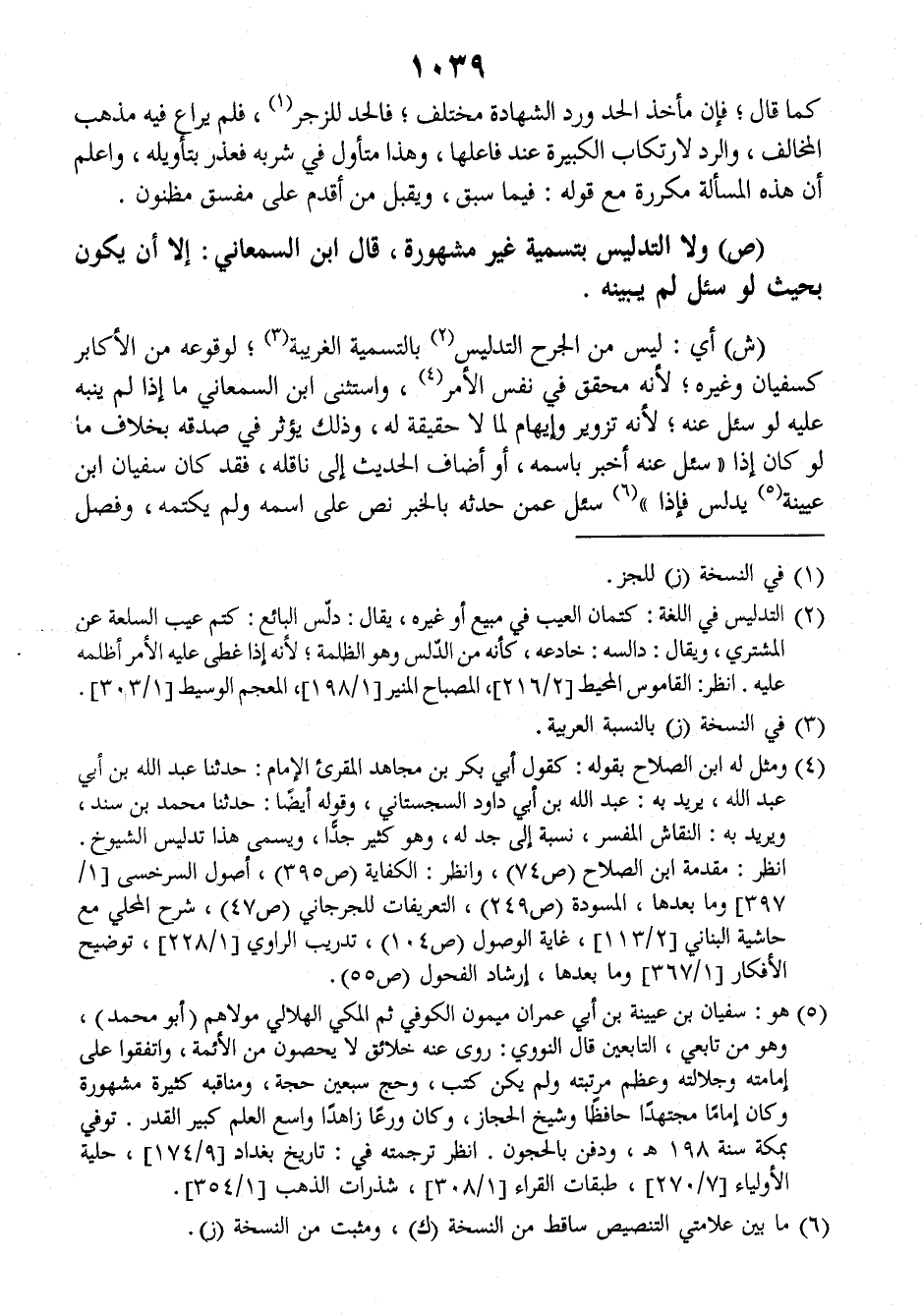 (ش) أي: ليس من الجرح التدليس بالتسمية الغريبة لوقوعه من الأكابر كسفيان وغيره، لأنه محقق في نفس الأمر، واستثنى ابن السمعاني ما إذا لم ينبه عليه لو سئل عنه، لأنه تزوير وإيهام لما لا حقيقة له، وذلك يؤثر في صدقه بخلاف ما لو كان إذا (سئل عنه أخبر باسمه، أو أضاف الحديث إلى ناقله فقد كان سفيان ابن عيينة يدلس فإذا) سئل عمن حدثه بالخبر نص على اسمه ولم يكتمه، وفصل