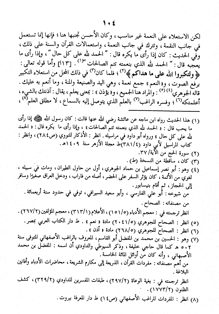 لكِنَّ الاستعلاءَ على النعمةِ غيرُ مُنَاسِبٍ، وكانَ الأحسنُ تَجَنُّبَها هنا؛ فإنَّها إنما تُسْتَعْمَلُ في جانبِ النِّقْمَةِ، وتُتْرَكُ في جانبِ النعمةِ، واستعمالاتُ القرآنِ والسنَّةِ على ذلك، وفي الحديثِ: كانَ إذا رَأَى ما يَكْرَهُ قالَ: ((الْحَمْدُ لِلَّهِ عَلَى كُلِّ حَالٍ))، وإذا رَأَى ما يُعْجِبُهُ قالَ: ((الْحَمْدُ لِلَّهِ الَّذِي بِنِعْمَتِهِ تَتِمُّ الصَّالِحَاتُ)).