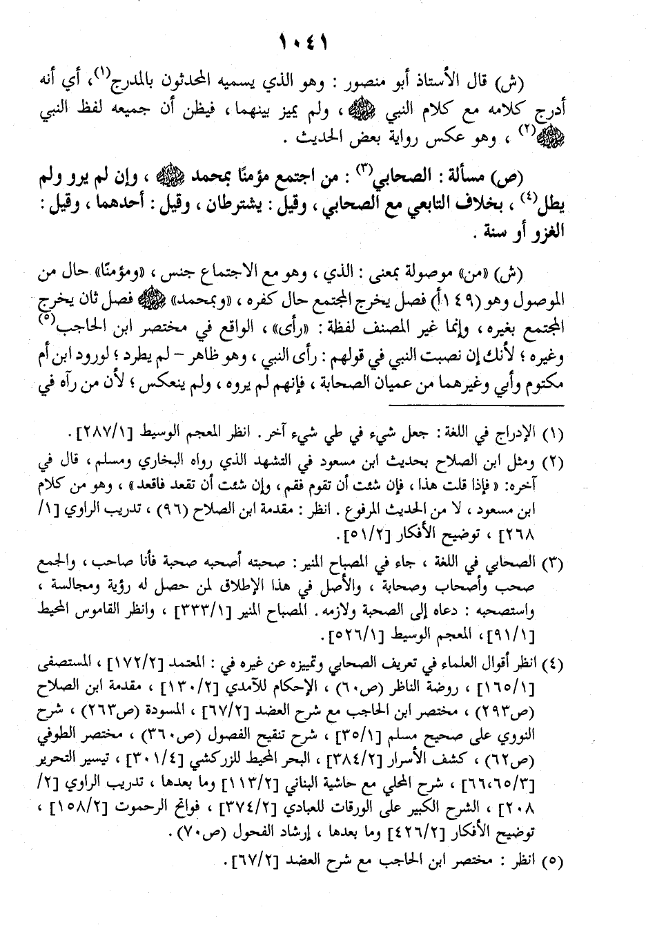 (ص) مسألة: الصحابي: من اجتمع مؤمنا بمحمد صلى الله عليه وسلم وإن لم يرو ولم يطل، بخلاف التابعي مع الصحابي، وقيل: يشترطان وقيل: أحدهما، وقيل: الغزو أو سنة.