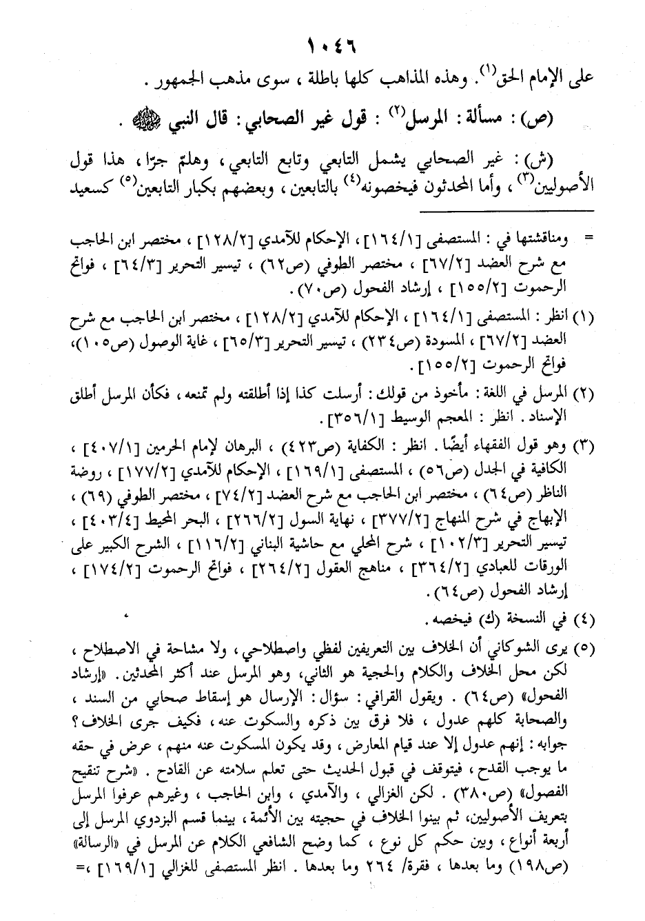 (ص): مسألة المرسل: قول غير الصحابي: قال النبي صلى الله عليه وسلم.