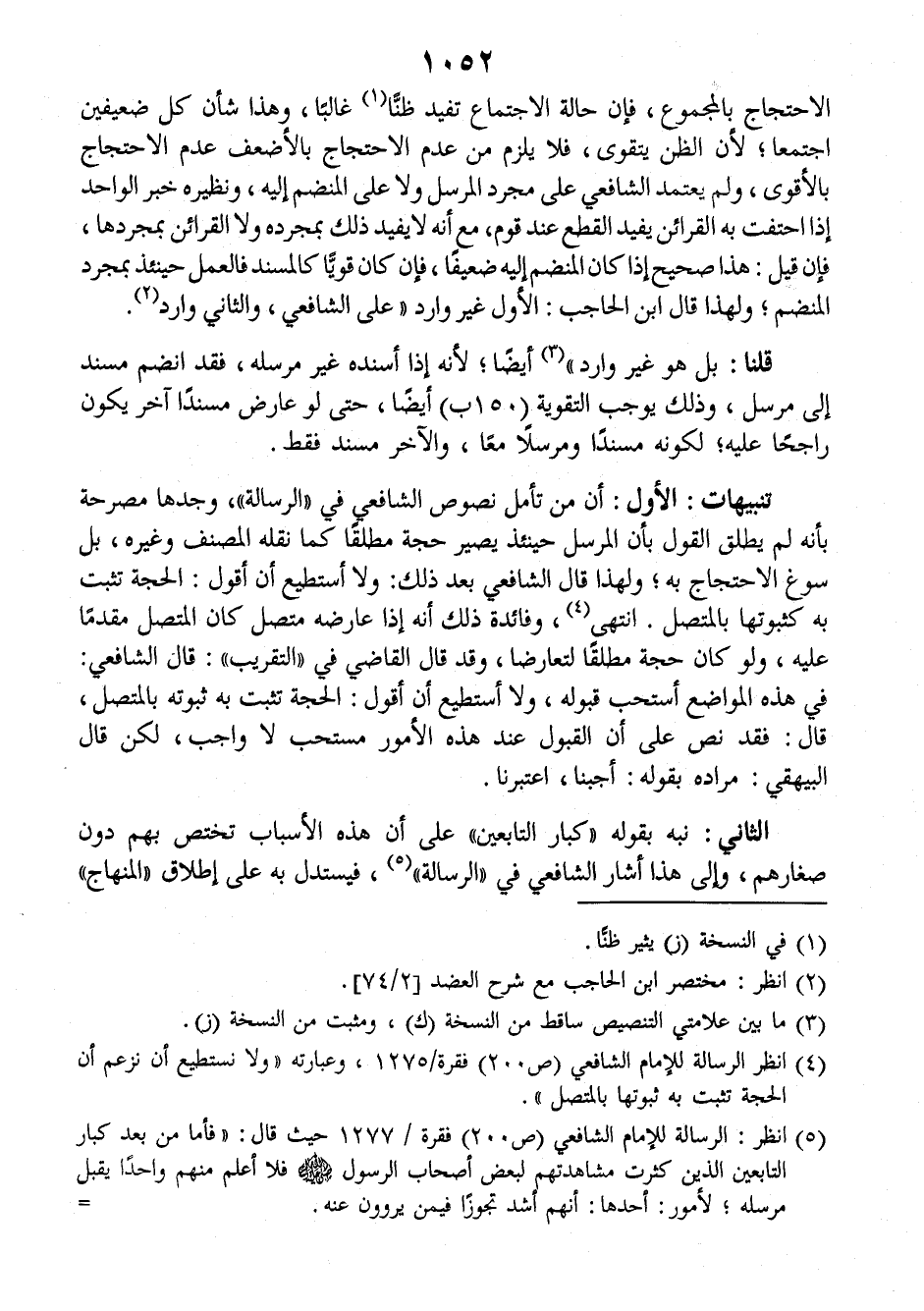 الثاني: نبه بقوله (كبار التابعين) على أن هذه الأسباب تختص بهم دون صغارهم، وإلى هذا أشار الشافعي في (الرسالة) فيستدل به على إطلاق (المنهاج)