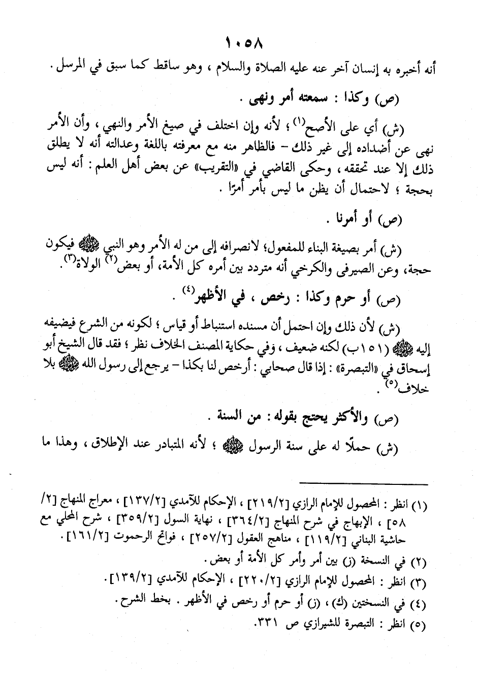 (ش) لأن ذلك وإن احتمل أن مسنده استنباط أو قياس، لكونه من الشرع فيضيفه إليه صلى الله عليه وسلم (١٥١ب) لكنه ضعيف وفي حكاية المصنف الخلاف نظر، فقد قال الشيخ أبو إسحاق في (التبصرة): إذا قال صحابي: أرخص لنا بكذا - يرجع إلى رسول الله صلى الله عليه وسلم بلا خلاف.