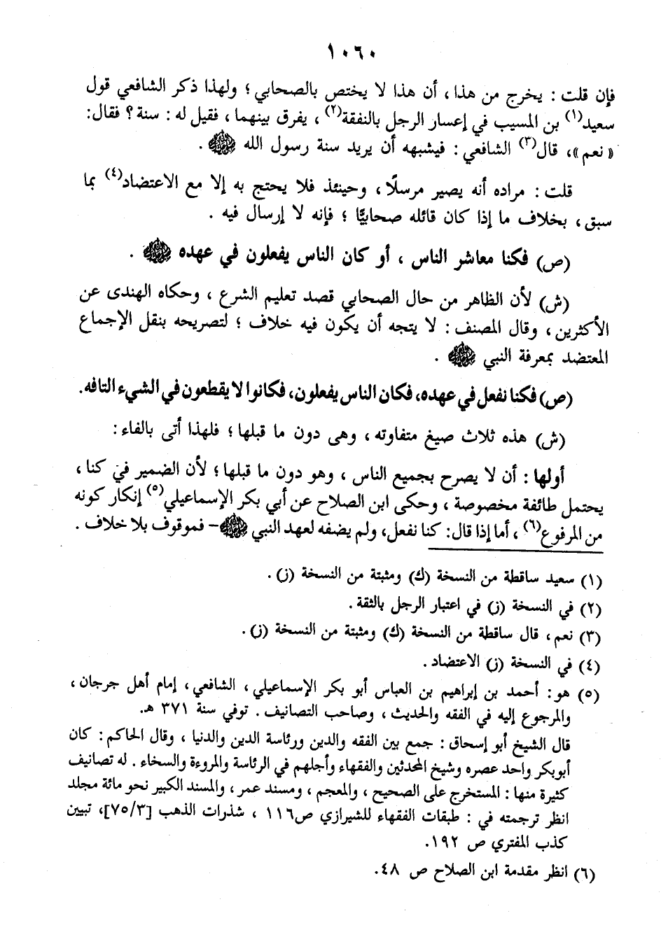 فإن قلت: يخرج من هذا، أن هذا لا يختص بالصحابي، ولهذا ذكر الشافعي قول سعيد بن المسيب في إعسار الرجل بالنفقة، يفرق بينهما، فقيل له: سنة؟ فقال: (نعم) قال الشافعي: فيشبهه أن يريد سنة رسول الله صلى الله عليه وسلم.