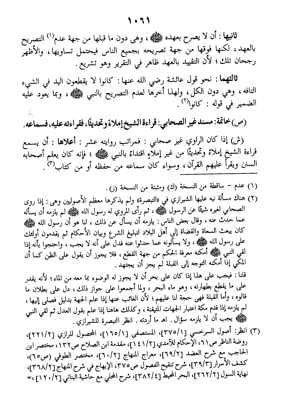(ص) خاتمة: مسند غير الصحابي: قراءة الشيخ إملاء وتحديثا، فقراءته عليه، فسماعه.