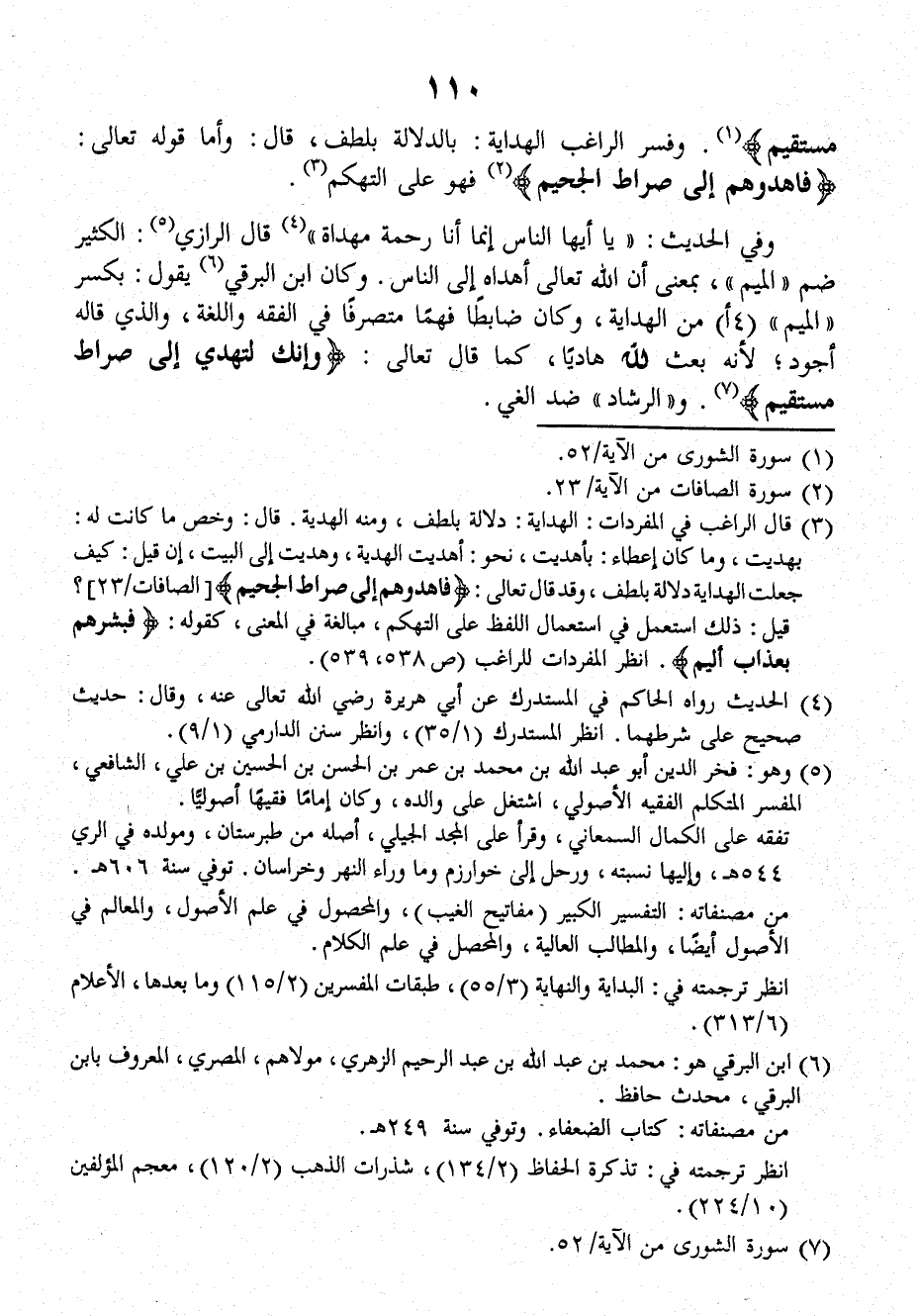 مُسْتَقِيمٍ}. وفَسَّرَ الراغِبُ الهِدَايَةَ بالدَّلالةِ بِلُطْفٍ، قالَ: وأمَّا قولُه تعالَى: {فَاهْدُوهُمْ إِلَى صِرَاطِ الْجَحِيمِ}. فهو على التهَكُّمِ.