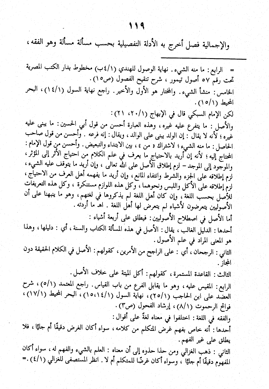 والإجماليَّةُ فَصْلٌ أَخْرَجَ به الأدِلَّةَ التفصيليَّةَ بحَسَبِ مسألةٍ مسألةٍ، وهو الفِقْهُ،