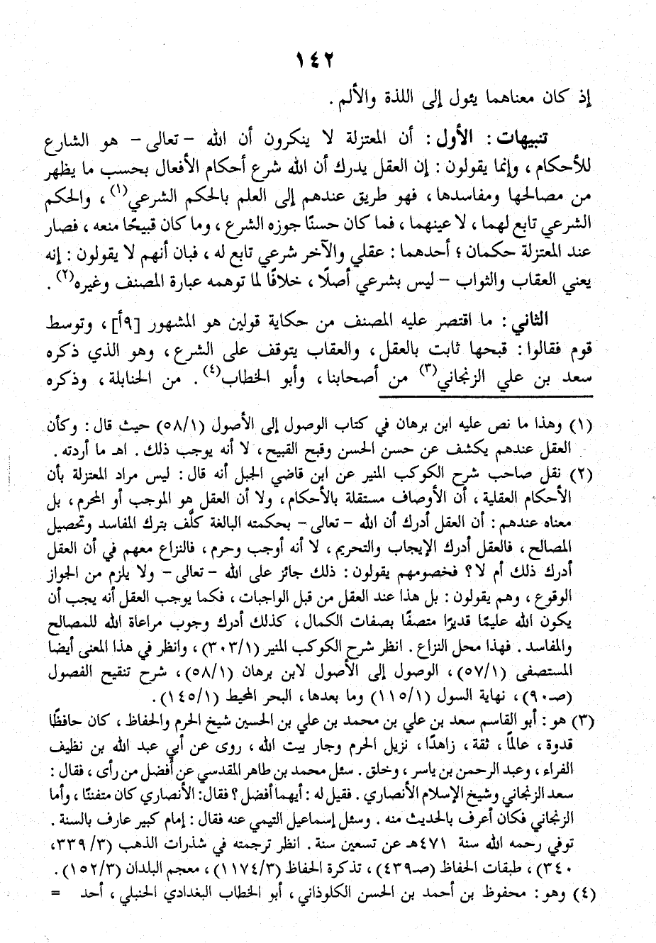 الأوَّلُ: أنَّ المُعْتَزِلَةَ لا يُنْكِرُونَ أنَّ اللهَ تعالَى هو الشارِعُ للأحكامِ، وإنما يقولون: إنَّ العقلَ يُدْرِكُ أنَّ اللهَ شَرَعَ أحكامَ الأفعالِ بِحَسَبِ ما يَظْهَرُ مِن مَصَالِحها ومَفَاسِدِها، فهو طريقٌ عندَهم إلى العلمِ بالحكمِ الشرعيِّ، والحكمُ الشرعيُّ تابعٌ لهما، لا عَيْنُهما، فما كانَ حَسَناً جَوَّزَهُ الشرعُ، وما كانَ قَبِيحاً مَنَعَه، فصارَ عندَ المُعْتَزِلَةِ حُكْمَانِ: أَحَدُهما: عقليٌّ، والآخرُ شرعيٌّ تابعٌ له، فبانَ أنَّهم لا يقولون: إنَّه - يعني العقابَ والثوابَ - ليسَ بشرعيٍّ أَصْلاً، خِلافاً لِمَا تُوهِمُهُ عبارةُ المصنِّفِ وغيرِهِ.
