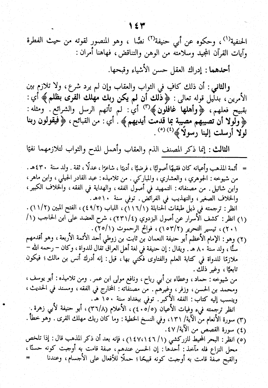 الحَنَفِيَّةُ، وحَكَوْهُ عن أبي حَنِيفَةَ نَصًّا، وهو المنصورُ؛ لِقُوَّتِهِ مِن حيثُ الفِطْرَةُ وآياتُ القرآنِ المجيدِ وسلامتُهُ مِن الوَهَنِ والتناقُضِ، فههنا أمرانِ: