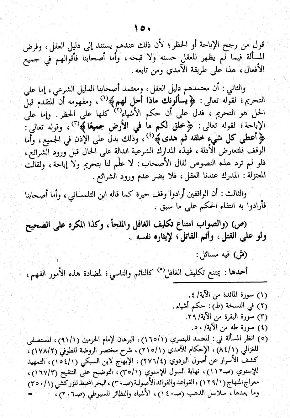 ش: فيه مسائلُ: