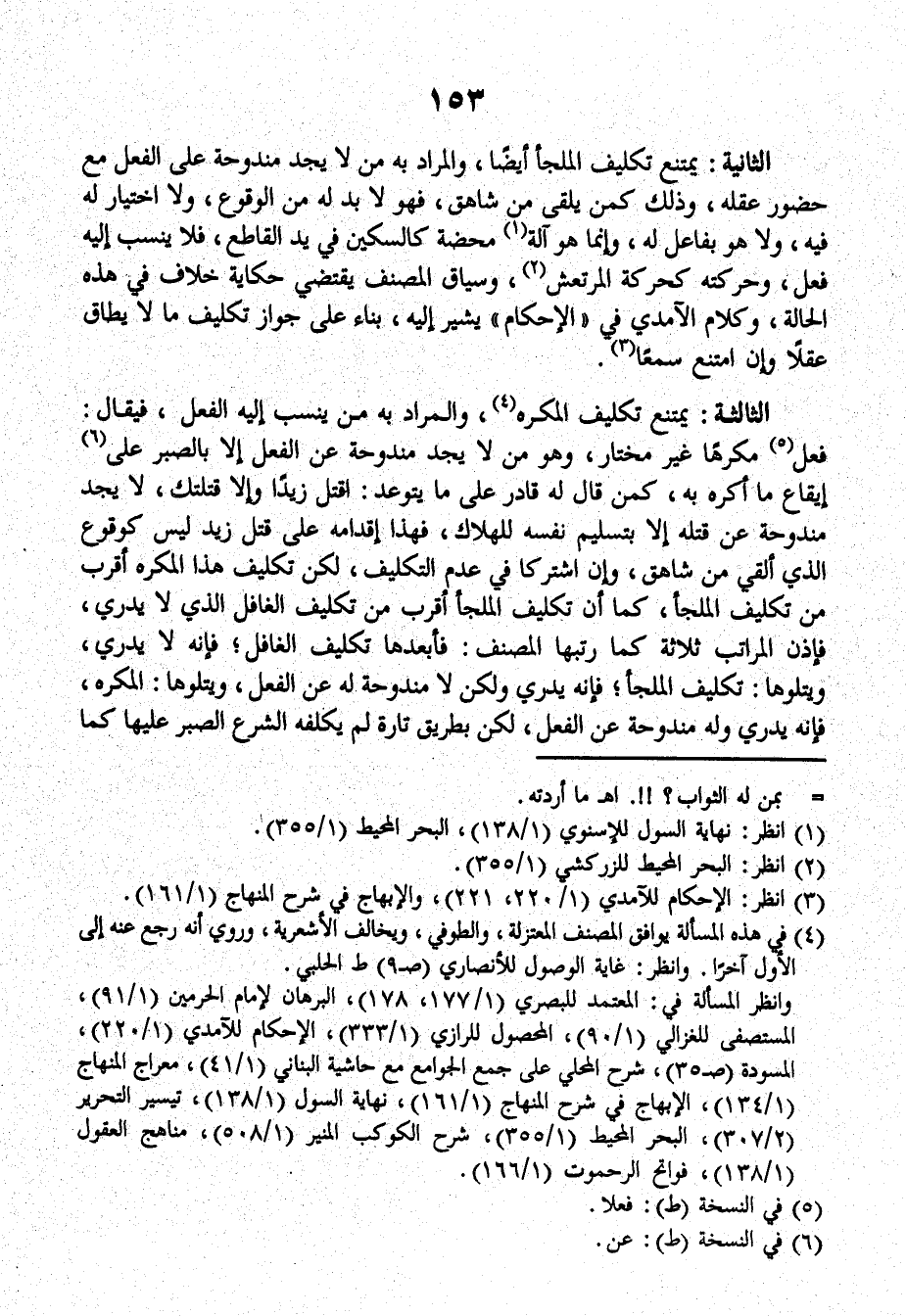 الثالثةُ: يَمْتَنِعُ تكليفُ المُكْرَهِ، والمرادُ به مَن يُنْسَبُ إليه الفعلُ، فيقالُ: فَعَلَ مُكْرَهاً غيرَ مُخْتَارٍ، وهو مَن لا يَجِدُ مَنْدُوحَةً عن الفعلِ إلاَّ بالصبرِ على إيقاعِ ما أُكْرِهَ به، كمَن قالَ له قادرٌ على ما يَتَوَعَّدُ: اقْتُلْ زَيْداً وإلاَّ قَتَلْتُكَ. لا يَجِدُ مندوحةً عن قتلِهِ إلاَّ بتسليمِ نفسِه للهلاكِ، فهذا إقدامُه على قَتْلِ زيدٍ ليسَ كَوُقُوعِ الذي أُلْقِيَ مِن شاهِقٍ، وإنِ اشْتَرَكَا في عدمِ التكليفِ، لكِنَّ تكليفَ هذا المُكْرَهِ أَقْرَبُ مِن تكليفِ المُلْجَأِ، كما أنَّ تَكْلِيفَ المُلْجَأِ أَقْرَبُ من تكليفِ الغافلِ الذي لا يَدْرِي، فإذاً المَرَاتِبُ ثلاثةٌ كما رَتَّبَهَا المصنِّفُ: فأَبْعَدُها تكليفُ الغافِلِ؛ فإنَّه لا يَدْرِي. ويَتْلُوها: تَكْلِيفُ المُلْجَأِ؛ فإنَّه يَدْرِي، ولكِنْ لا مَنْدُوحَةَ له عن الفعلِ. ويَتْلُوها: المُكْرَهُ؛ فإنَّه يَدْرِي وله مَنْدُوحَةٌ عن الفعلِ، لكِنْ بطريقٍ تارَةً لم يُكَلِّفْهُ الشرعُ الصبرَ عليها؛ كما