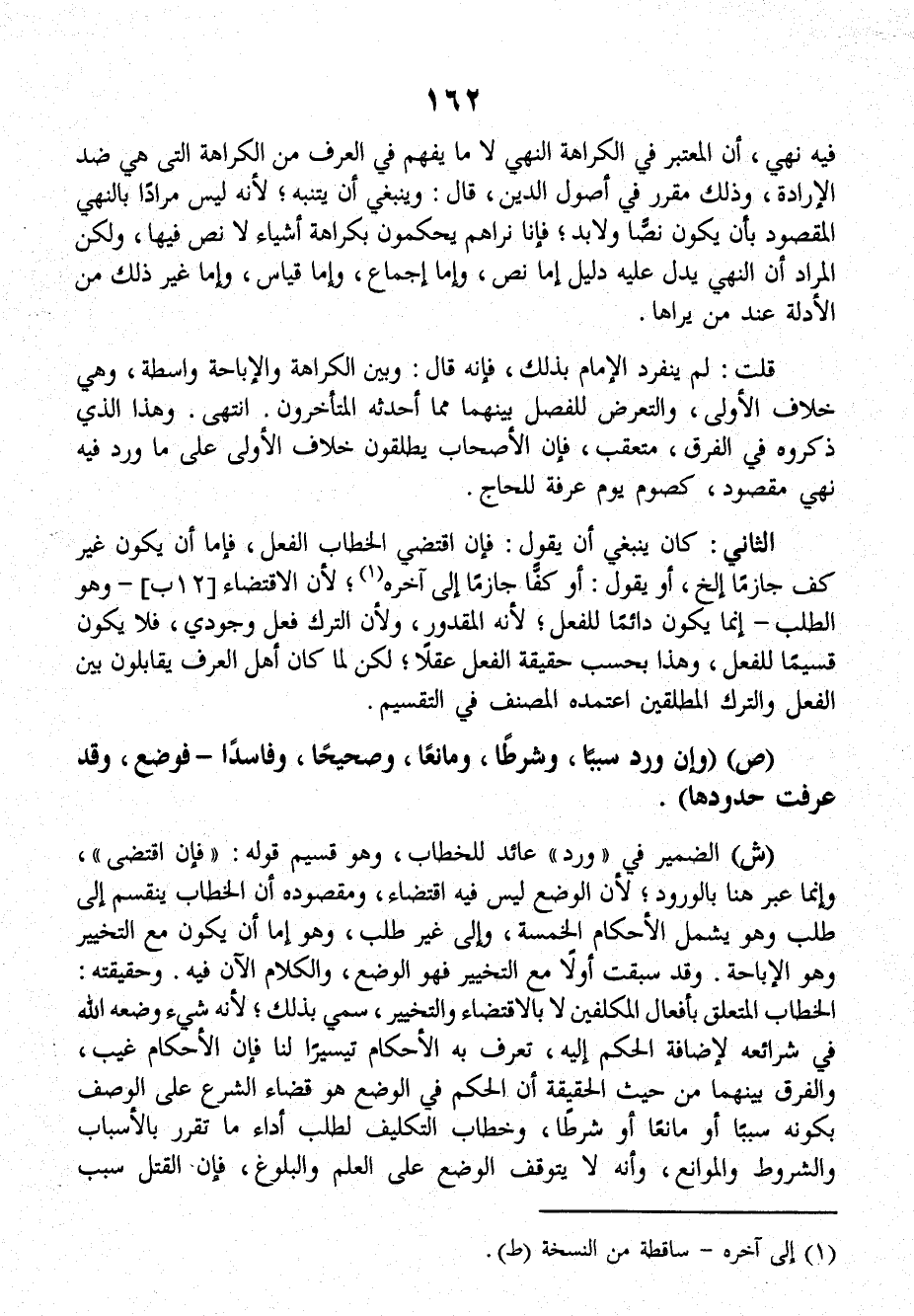 الثَّانِي: كَانَ يَنْبَغِي أَنْ يَقْولَ: فَإِنِ اقْتَضَى الخطابُ الفعلَ، فَإِمَّا أَنْ يَكُونَ غَيْرَ كَفٍّ جَازِماً .... إلخ، أَوْ يَقُولَ: أَوْ كَفًّا جَازِماً .... إلى آخرِهِ؛ لأَنَّ الاقْتِضَاءَ (١٢ ب) ـ وَهُوَ الطلبُ - إِنَّمَا يَكُونُ دَائِماً للفعلِ؛ لأَنَّهُ المقدورُ، وَلأَنَّ التركَ فعلٌ وُجُودِيٌّ، فَلاَ يَكُونُ قَسِيماً للفعلِ، وَهَذَا بَحَسْبِ حقيقةِ الفعلِ عَقْلاً، لَكِنْ لَمَّا كَانَ أهلُ العرفِ يُقَابِلُونَ بَيْنَ الفعلِ والتركِ الْمُطْلَقَيْنِ اعْتَمَدَهُ الْمُصَنِّفُ فِي التقسيمِ.