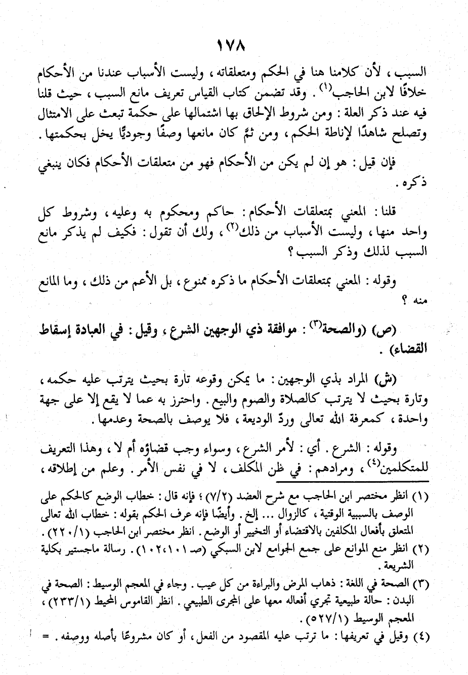 السببِ؛ لأَنَّ كلامَنَا هُنَا فِي الحُكْمِ ومُتَعَلَّقَاتِهِ، وليستِ الأسبابُ عِنْدَنَا مِنَ الأحكامِ خِلاَفاً لابْنِ الْحَاجِبِ، وَقَدْ تَضَمَّنَ كِتَابُ القياسِ تعريفَ مانعِ السببِ، حَيْثُ قُلْنَا فَيهِ عِنْدَ ذِكْرِ الْعِلَّةِ: وَمِنْ شروطِ الإلحاقِ بِهَا اشتمالُهَا عَلَى حكمةٍ تَبْعَثُ على الامْتِثَالِ وَتَصْلُحُ شَاهِداً لإِنَاطَةِ الحُكْمِ، وِمِنْ ثَمَّ كَانَ مَانِعُهَا وَصْفاً وُجُودِياً يُخِلُّ بحكمتِهَا.
