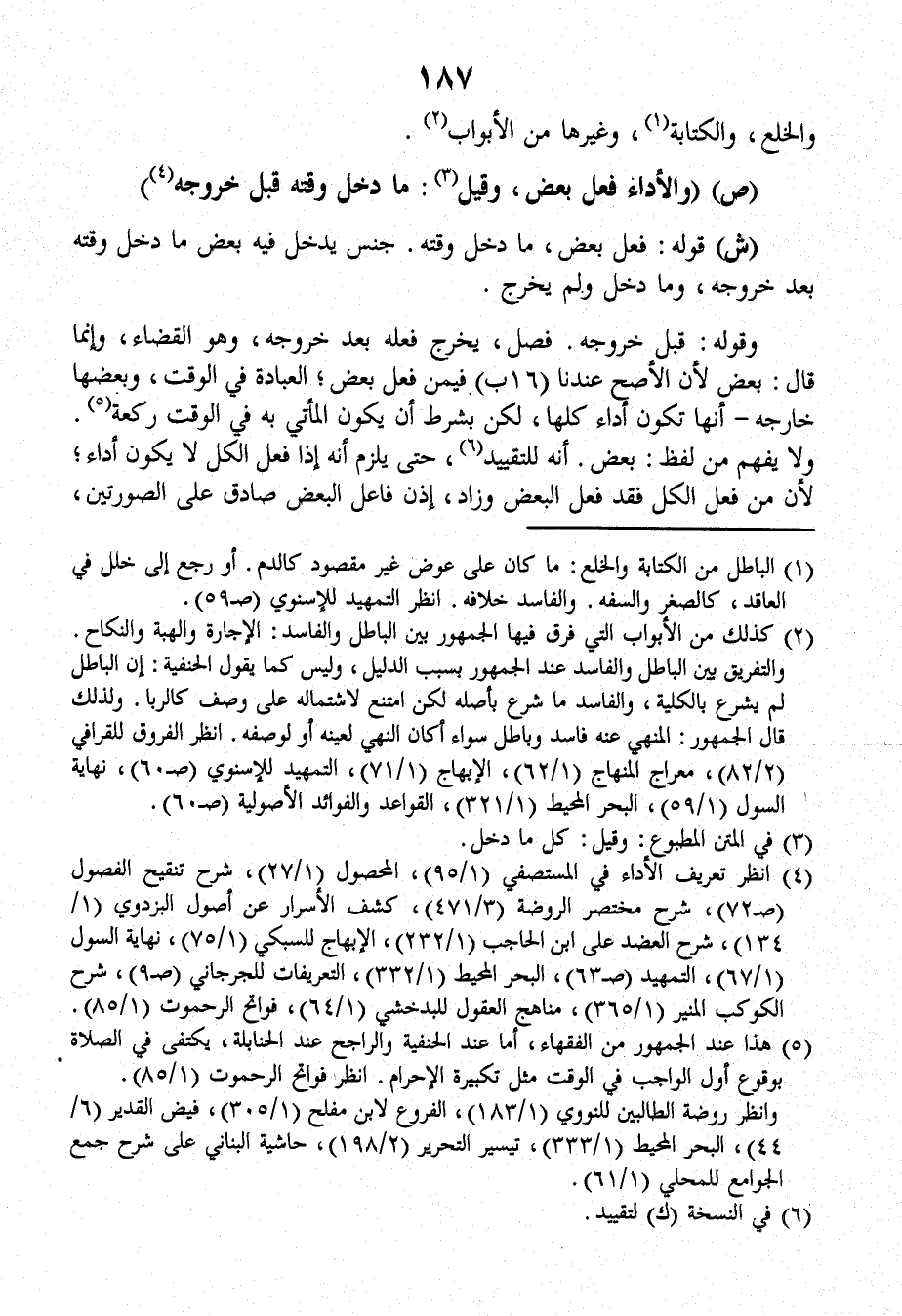 (ش): قَوْلُهُ: فِعْلُ بَعْضٍ مَا دَخَلَ وَقْتُهُ، جِنْسٌ يَدْخُلُ فِيهِ بعضُ مَا دَخَلَ وقتُهُ بَعْدَ خُرُوجِهِ، وَمَا دَخَلَ وَلَمْ يَخْرُجْ.