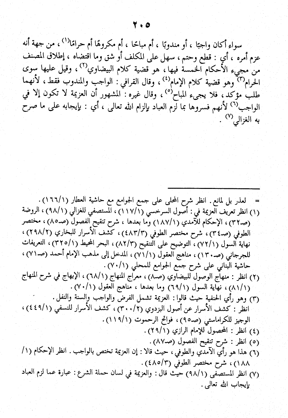 وَقَالَ غَيْرُهُ: المَشْهُورُ أَنَّ الْعَزِيمَةَ لاَ تَكُونُ إِلاَّ في الواجبِ لأَنَّهُمْ فَسَّرُوهَا بِمَا لَزِمَ العبادَ بإلزامِ اللَّهِ تَعَالَى؛ أَيْ: بَإِيجَابِهِ على مَا صَرَّحَ بِهِ الْغَزَالِيُّ.